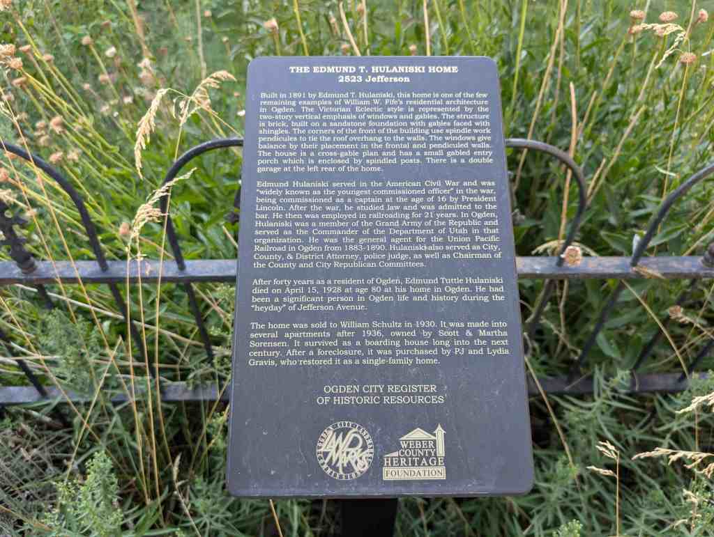 mentioned in Jefferson Avenue Historic District: Edmund T. Hulaniski (2523 Jefferson) who was significant to Ogden’s politics by serving as city, county, and district attorney, police judge, and chairman of the county and city Republican Committees. From 1907 to 1909 he was a member of the Utah State Senate. He lived in the Jefferson District from 1882 until his death in 1928.
