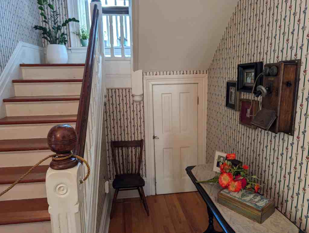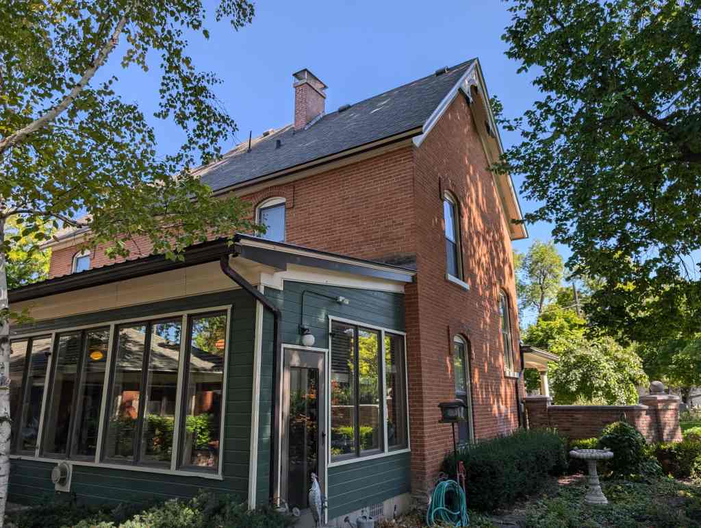 This two story Victorian home was constructed by James W. Quayle in 1898-1900. The Quayle family had a large store on Main Street and carried dry goods, guns, and ammunition. Keith and Elizabeth Mott purchased this home in 1992 and have carefully rescued it from many years of apart- ments, abuse, and neglect. The front Courtyard and elaborate landscape in the back of the house set the stage for the beautiful interior of this brick home.