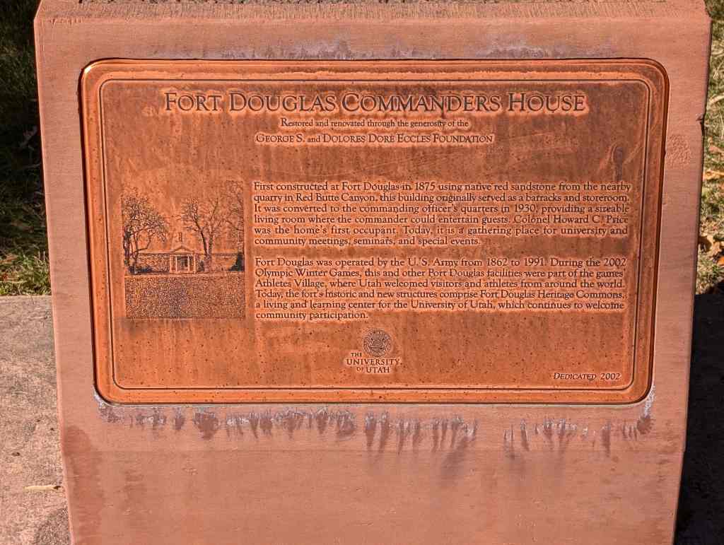 Fort Douglas was operated by the U. S. Army from 1862 to 1991. During the 2002 Olympic Winter Games, this and other Fort Douglas facilities were part of the games Athletes Village, where Utah welcomed visitors and athletes from around the world. Today, the fort’s historic and new structures comprise Fort Douglas Heritage Commons, a living and learning center for the University of Utah, which continues to welcome community participation.