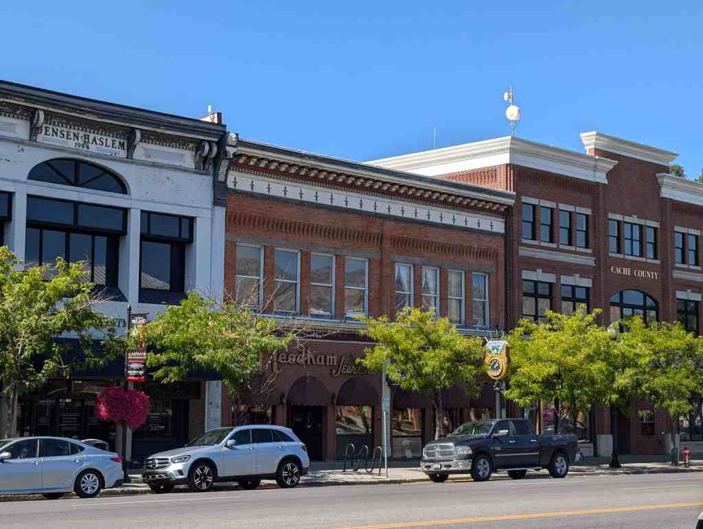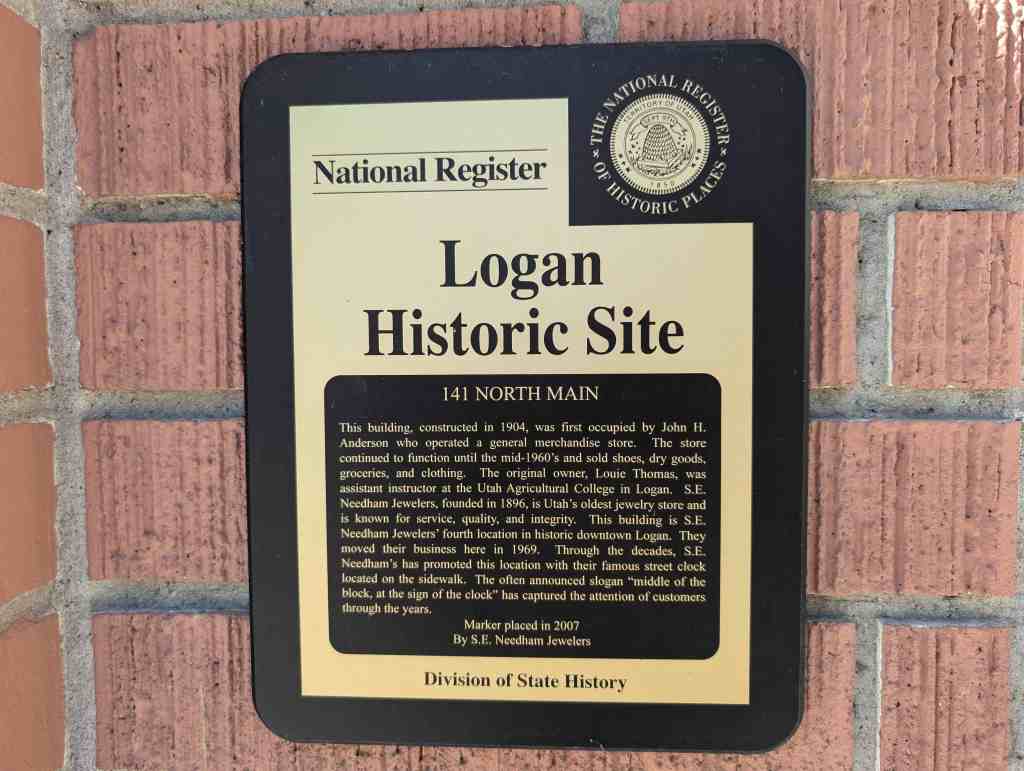 This building, constructed in 1904, was first occupied by John H. Anderson who operated a general merchandise store. The store continued to function until the mid-1960’s and sold shoes, dry goods, groceries, and clothing. The original owner, Louie Thomas, was assistant instructor at the Utah Agricultural College in Logan. S.E. Needham Jewelers, founded in 1896, is Utah’s oldest jewelry store and is known for service, quality, and integrity. This building is S.E. Needham Jewelers’ fourth location in historic downtown Logan. They moved their business here in 1969. Through the decades, S.E. Needham’s has promoted this location with their famous street clock located on the sidewalk. The often announced slogan “middle of the block, at the sign of the clock” has captured the attention of customers through the years.