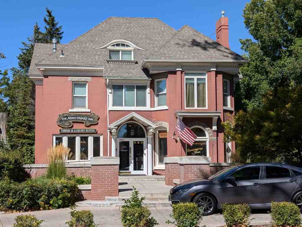 In 1877, at the request of townspeople, Oliver Ormsby came to Logan to be the first college-trained medical doctor in the city. After serving a mission for the Church of Jesus Christ of Latter-day Saints, and establishing his practice, he built this home in 1890. In 1920, George Thatcher, a grandson of church leader Brigham Young, bought the house. While Mrs. Thatcher, the head of the music department at Utah State Agricultural College, held teas and musical parties, George and his brother, Brahman Guy Thatcher, built a business empire in Cache Valley. They were involved in mining, flour mills, banking, electric power, a music store, the Capitol and Lyric Theatres, and the Thatcher Opera House. The house is now a delightful bed and breakfast that is beautifully maintained and features themed rooms.*