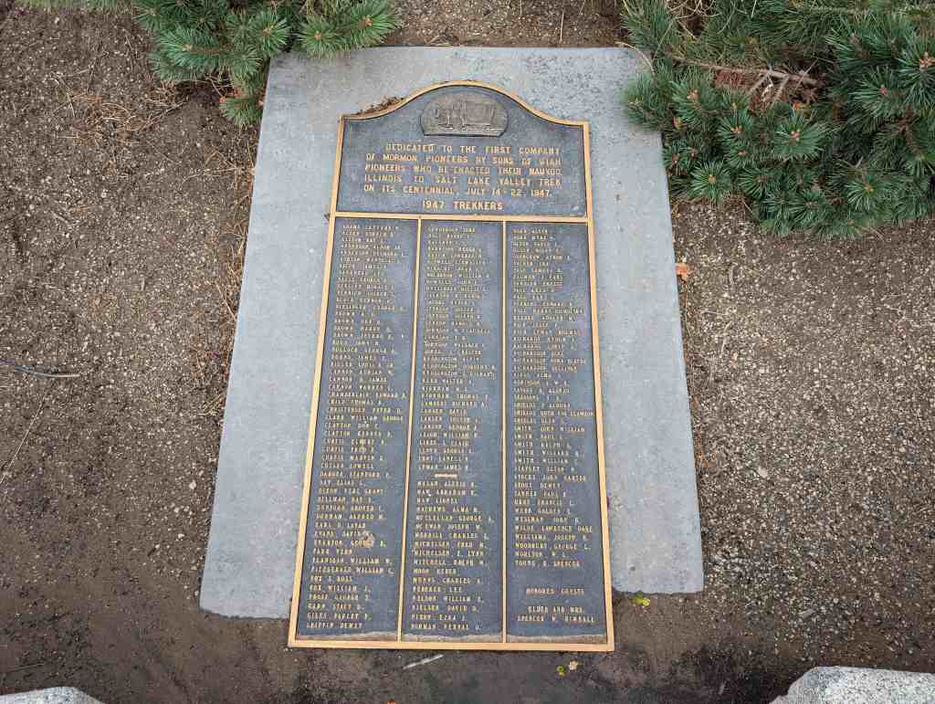 Erected and Dedicated to the first company of pioneers to enter the Valley of the Great Salt Lake in July 1847.