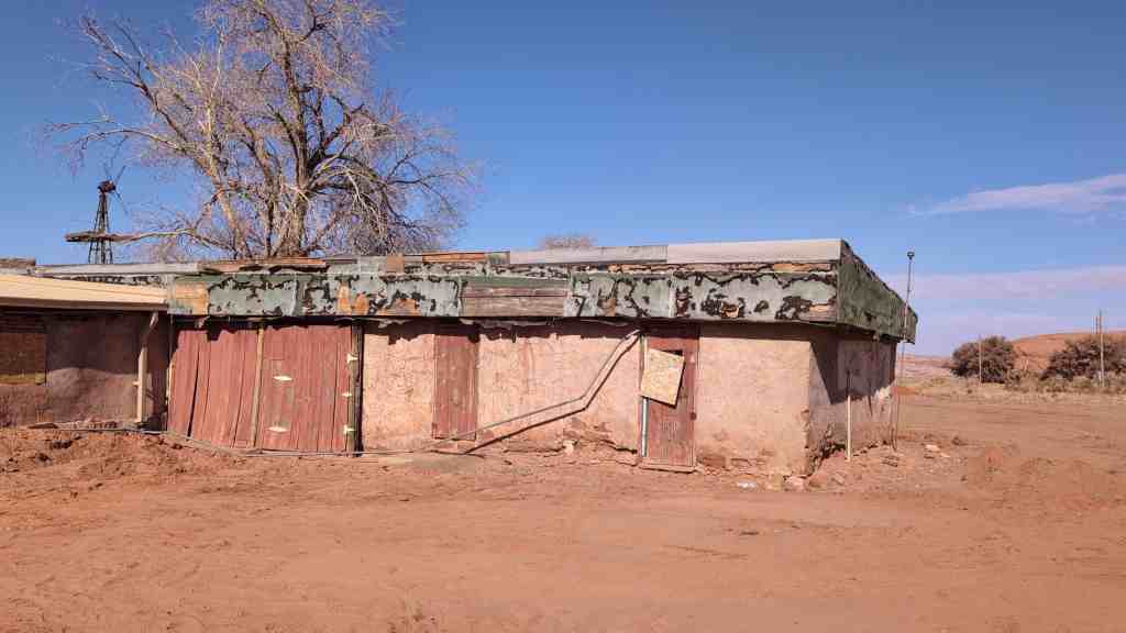 Over the years there have been subtle changes at Oljato. During the last twenty year Mrs. Smith has amassed a fine collection of Navajo artwork, including baskets, rugs and silver. These will be kept intact at the post, which will hopefully be passed on to the Smith’s daughter, currently the resident trader at Inscription House Trading Post. Additionally, the Qljato Trading Post has always had a traditional hogan in front, facing east, which was previously used by Navajos who travelled long distances to trade and needed a place to spend the night. Water was provided for them and they could stay as long as they wanted, but the advent of the pick-up truck shortened travel time to Oljato. Accommodations became unnecessary; the hogan was first cemented over and is now closed up. Corrals were dismantled as livestock, previously a medium of exchange, was replaced by cash as stipulated by the Navajo tribe.