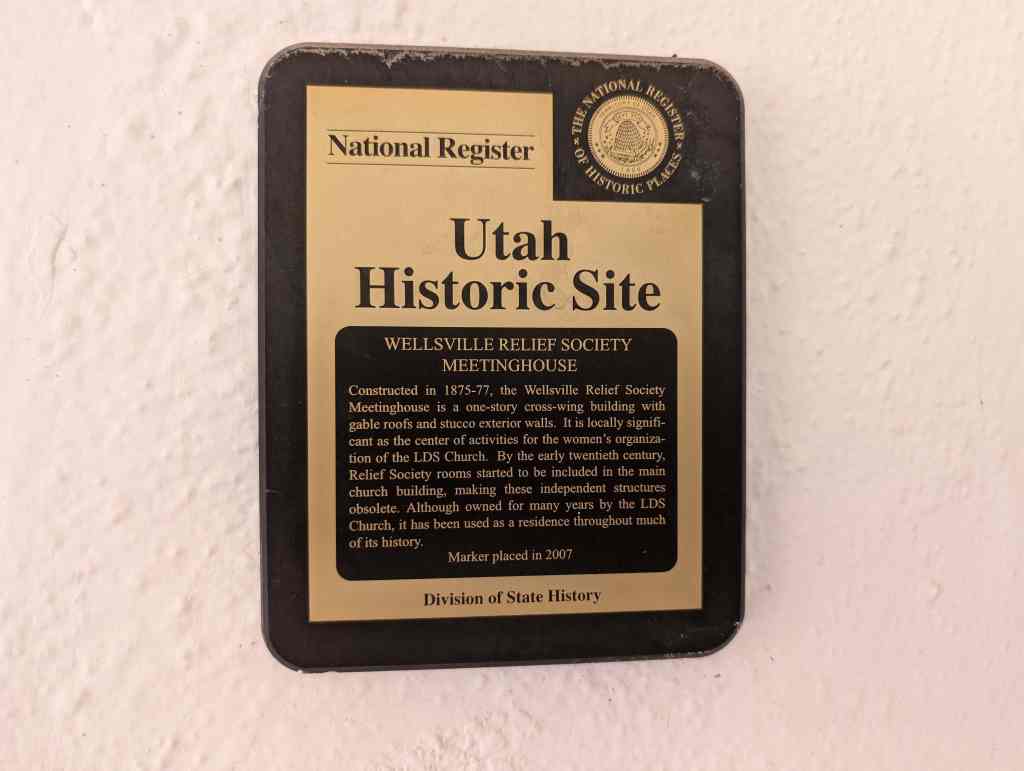 Constructed in 1875-77, the Wellsville Relief Society Meetinghouse is a one-story cross-wing building with gable roofs and stucco exterior walls. It is locally significant as the center of activities for the women’s organization of the LDS Church. By the early twentieth century, Relief Society rooms started to be included in the main church building, making these independent structures obsolete. Although owned for many years by the LDS Church, it has been used as a residence throughout much of its history.