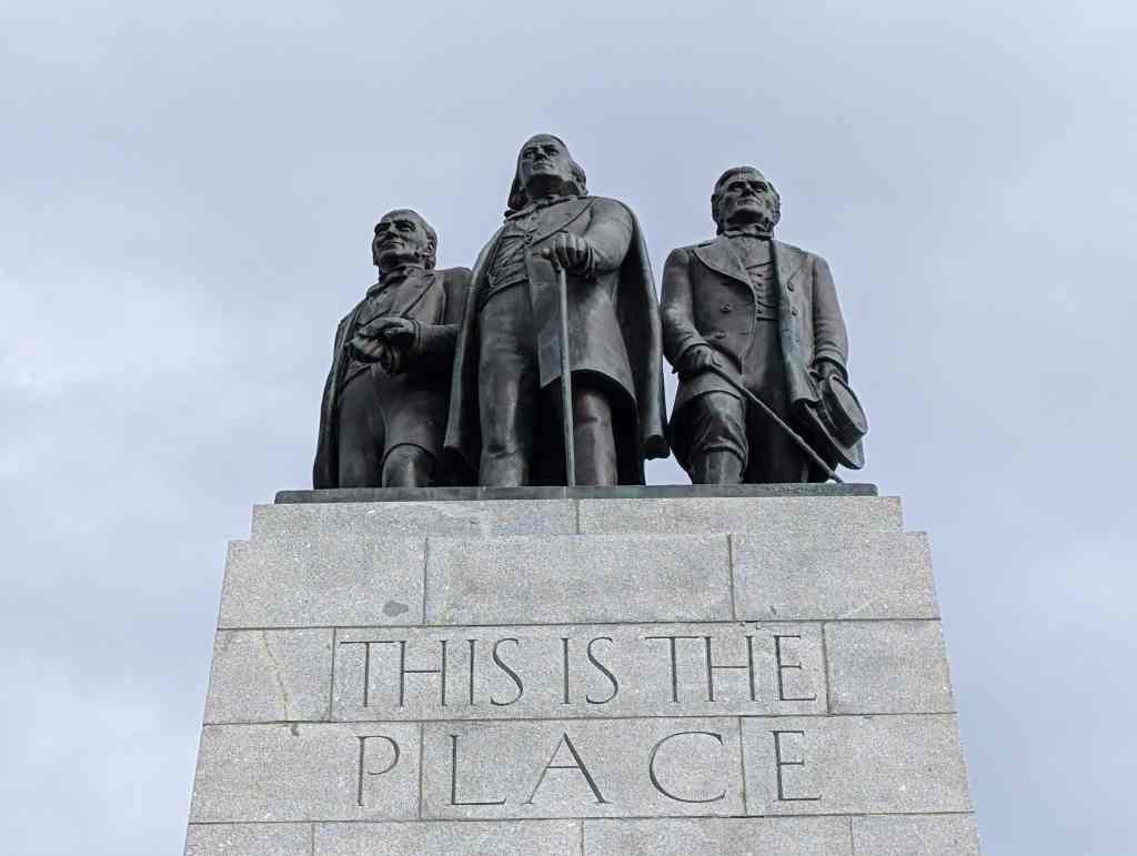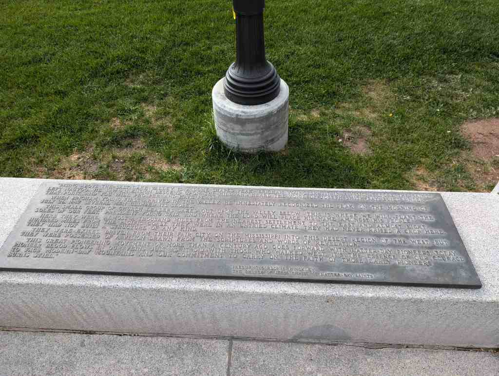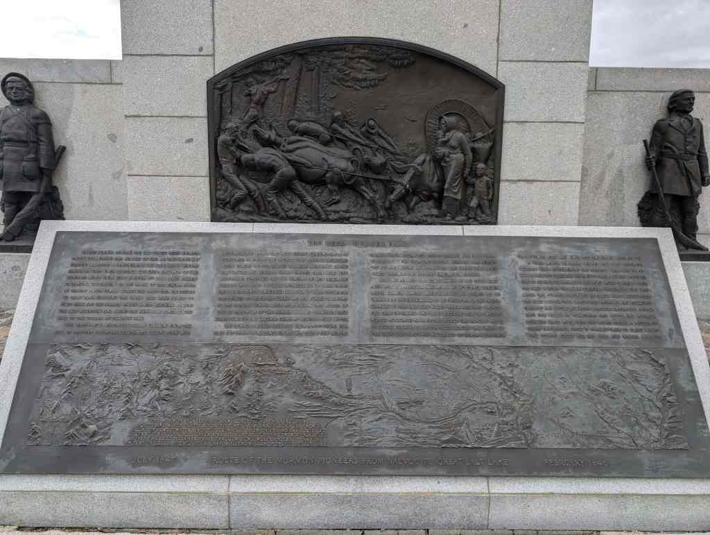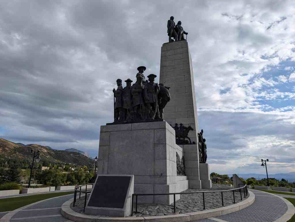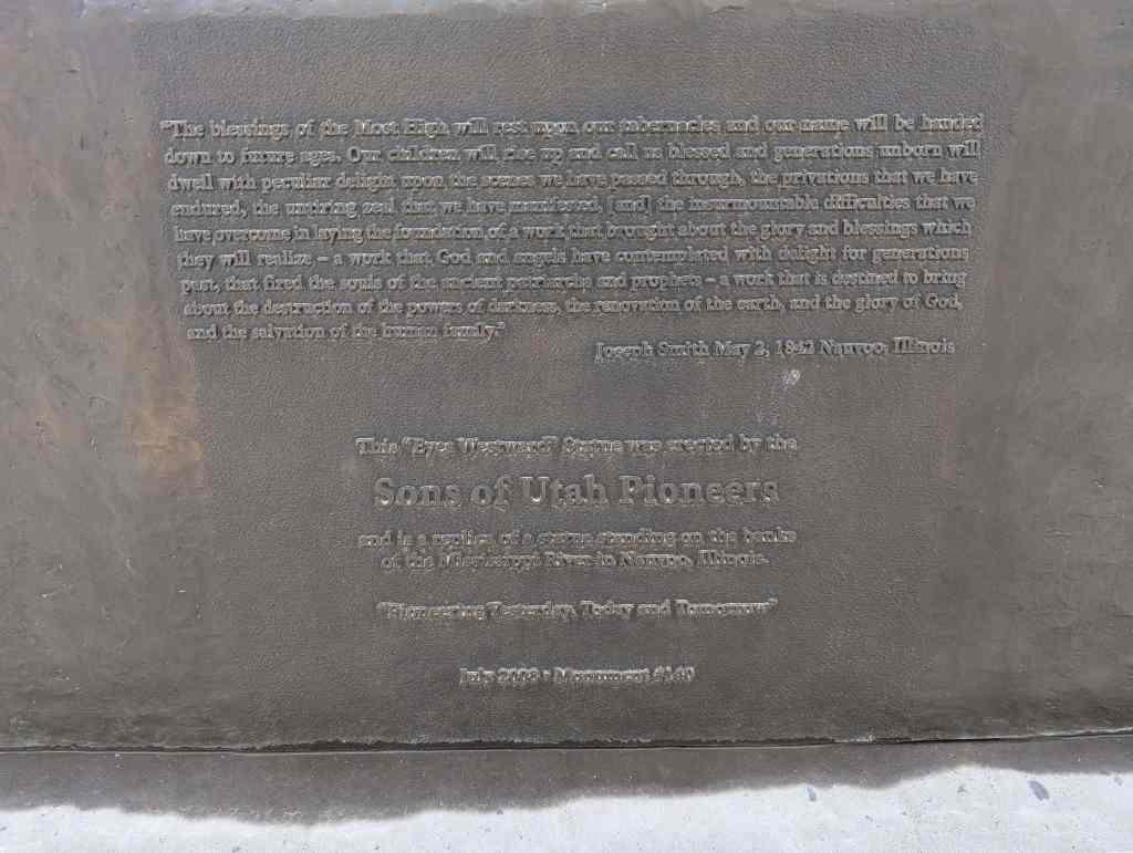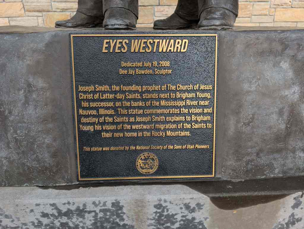 This “Eyes Westward” statue was erected by the Sons of Utah Pioneers and is a replica of a statue standing on the banks of the Mississippi River in Nauvoo, Illinois.