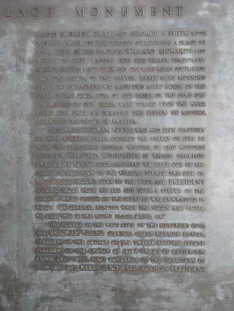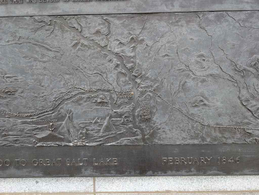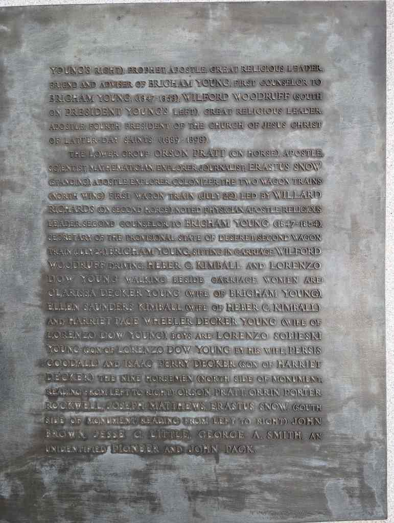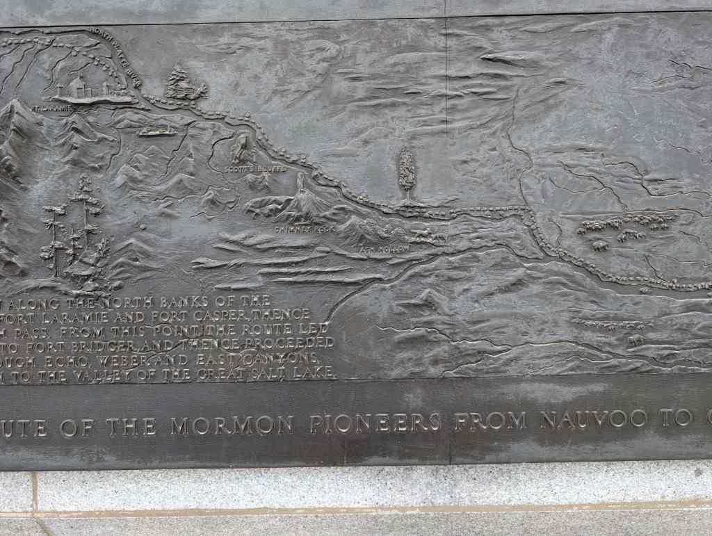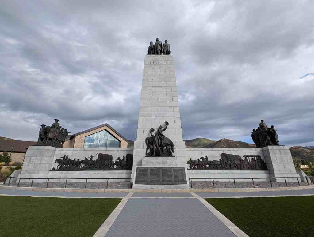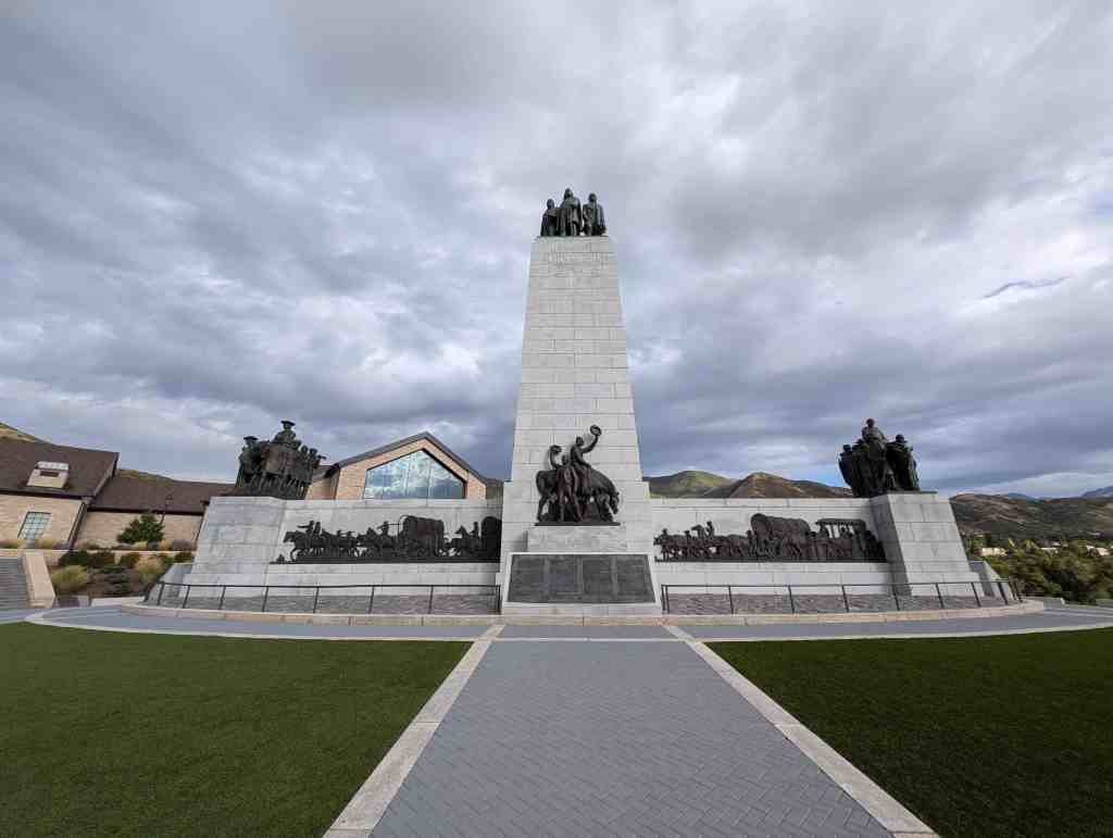 This “Eyes Westward” statue was erected by the Sons of Utah Pioneers and is a replica of a statue standing on the banks of the Mississippi River in Nauvoo, Illinois.