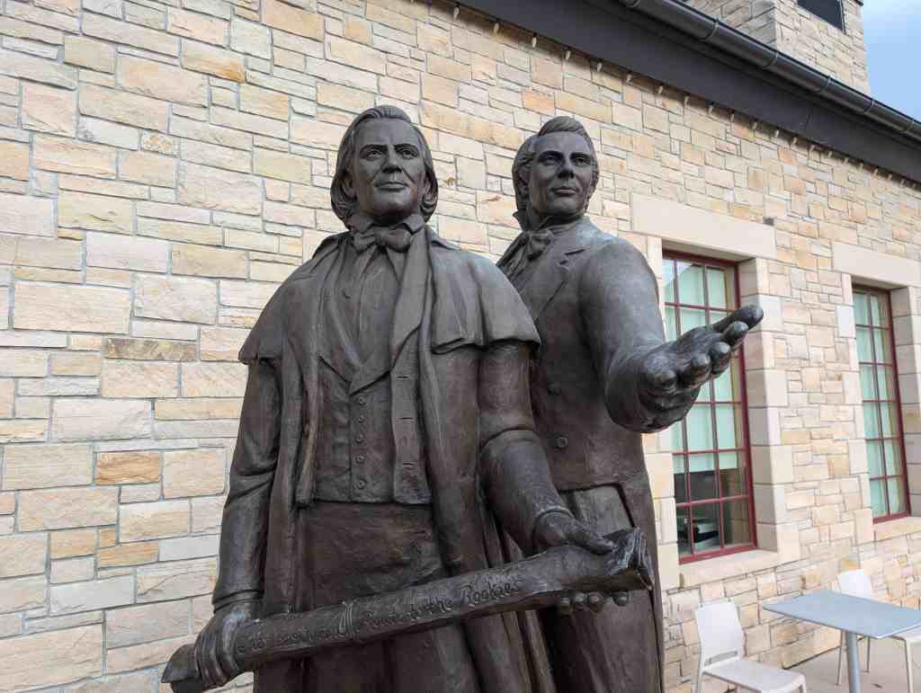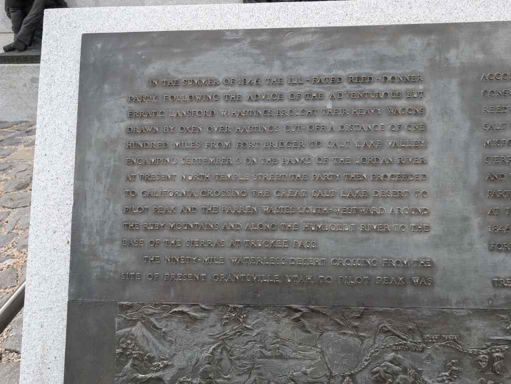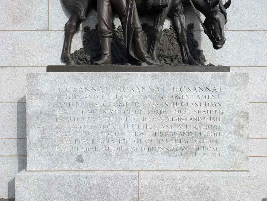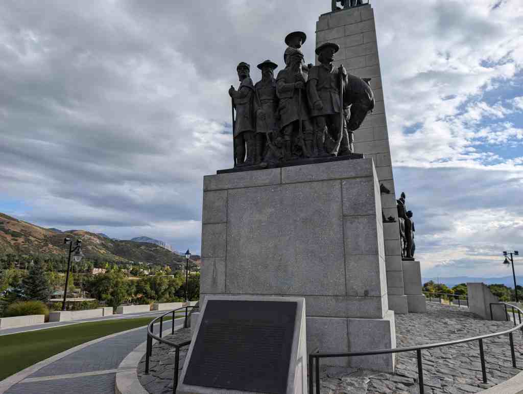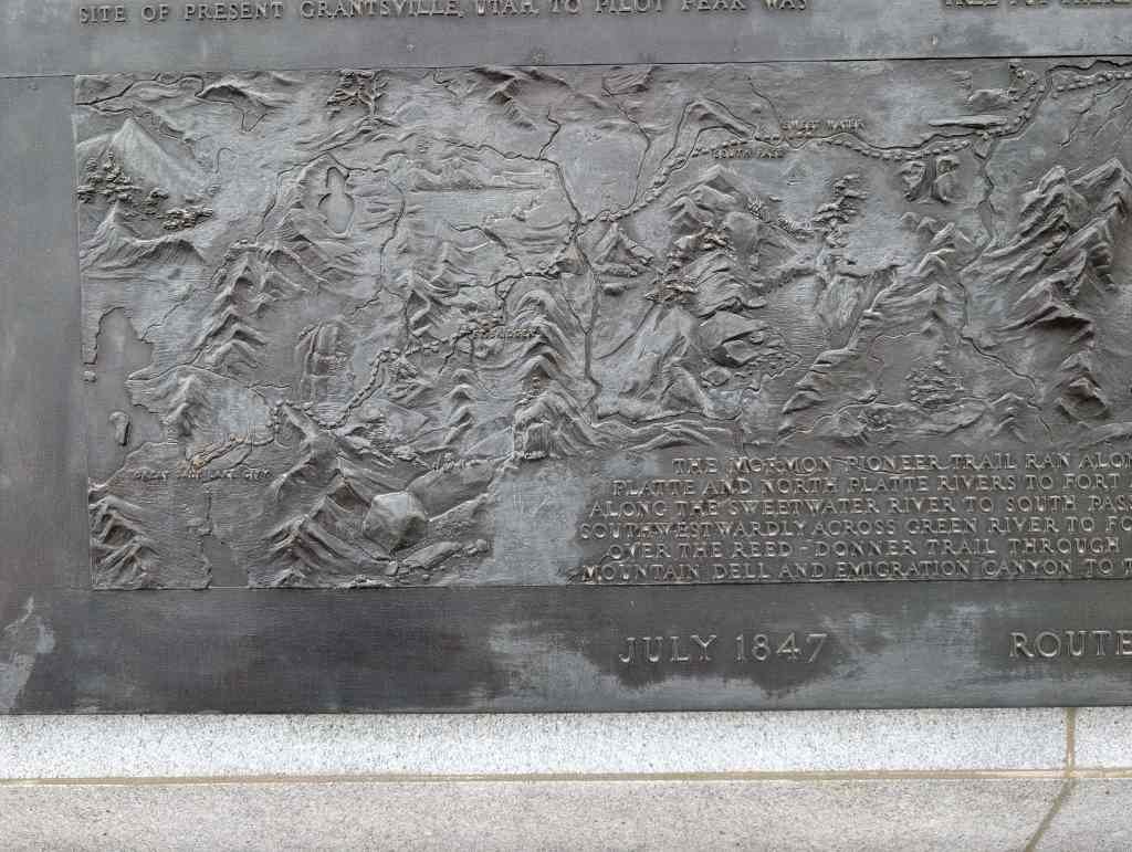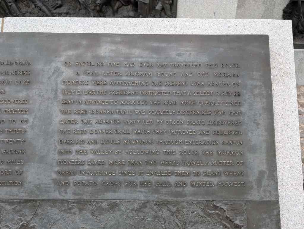 This “Eyes Westward” statue was erected by the Sons of Utah Pioneers and is a replica of a statue standing on the banks of the Mississippi River in Nauvoo, Illinois.