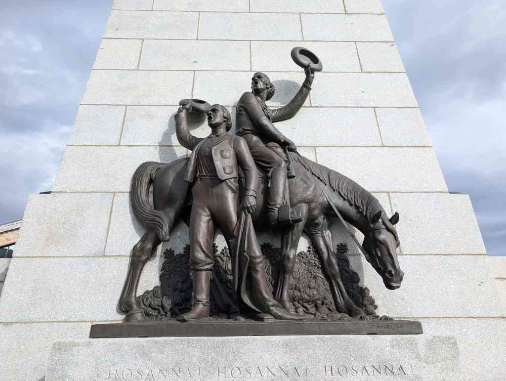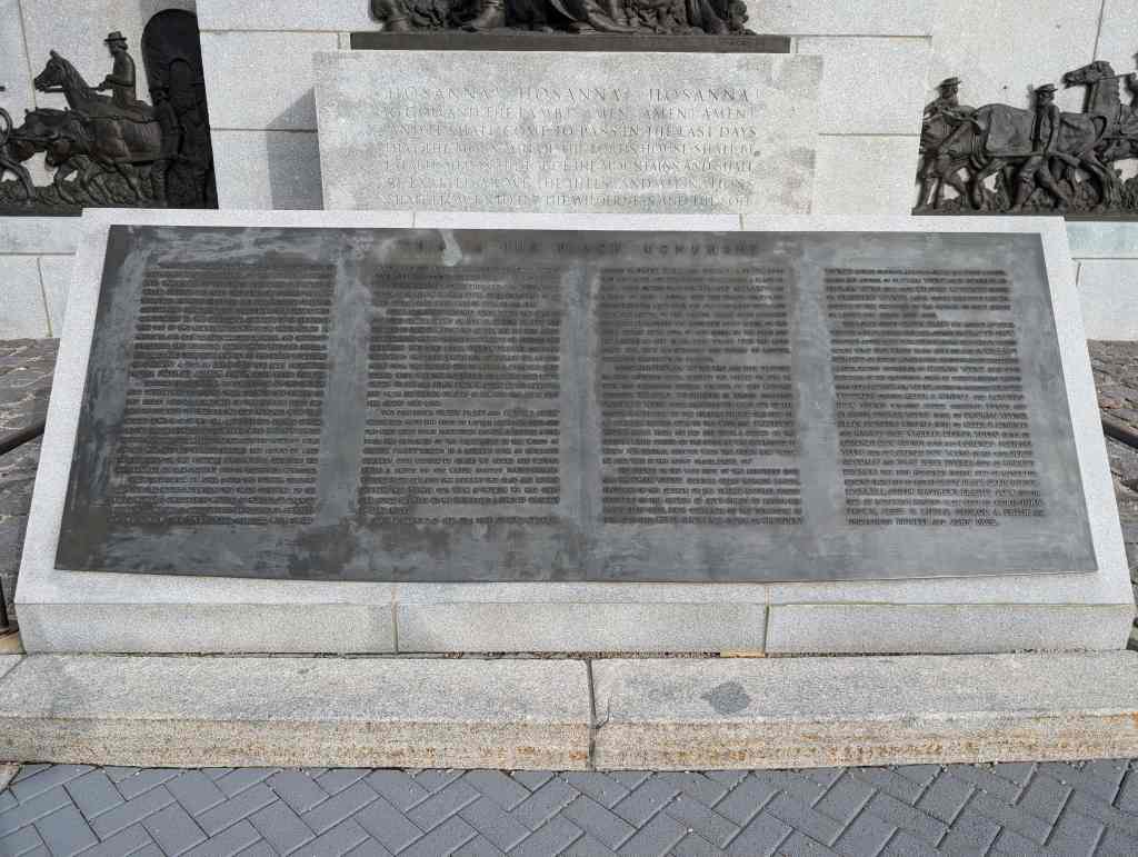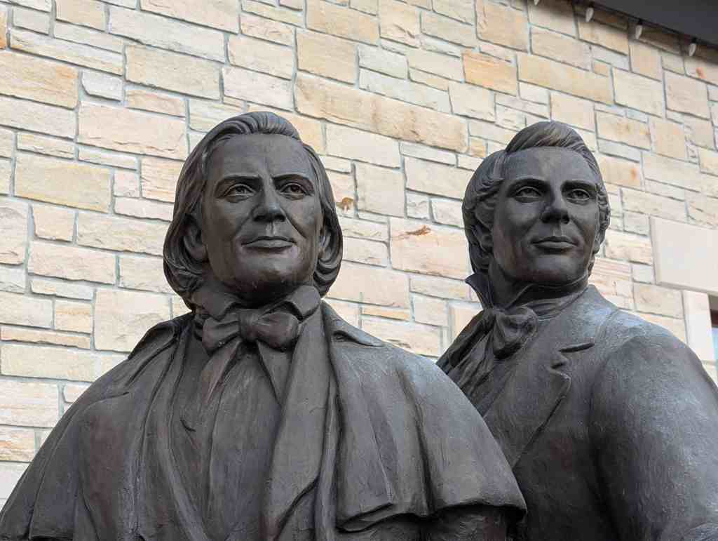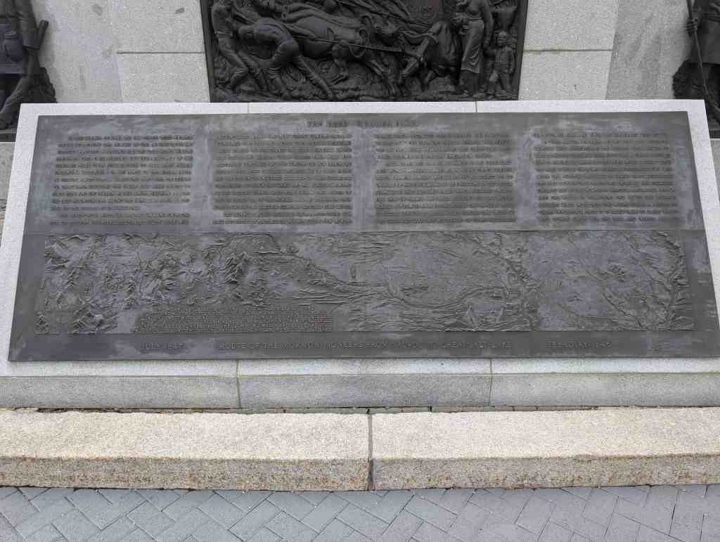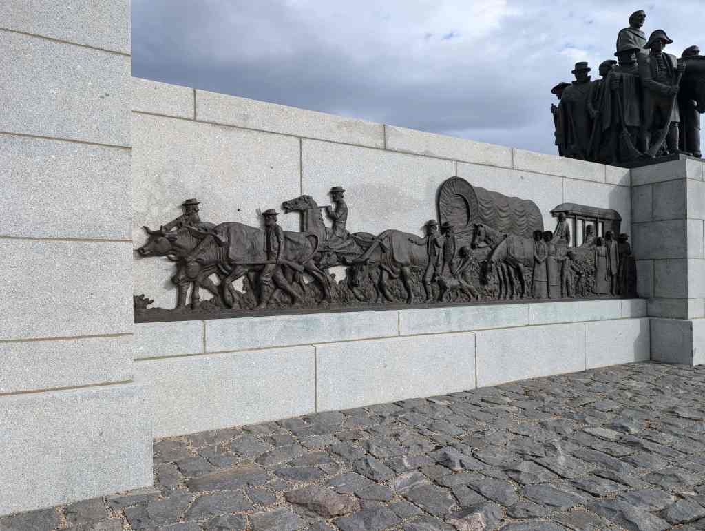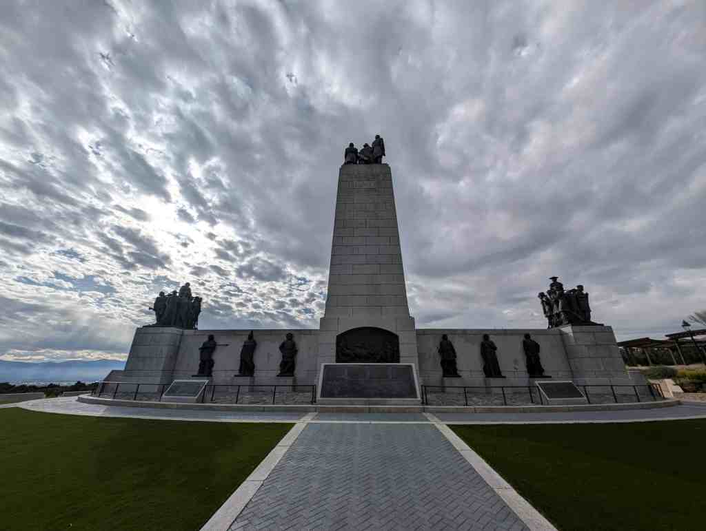 This “Eyes Westward” statue was erected by the Sons of Utah Pioneers and is a replica of a statue standing on the banks of the Mississippi River in Nauvoo, Illinois.
