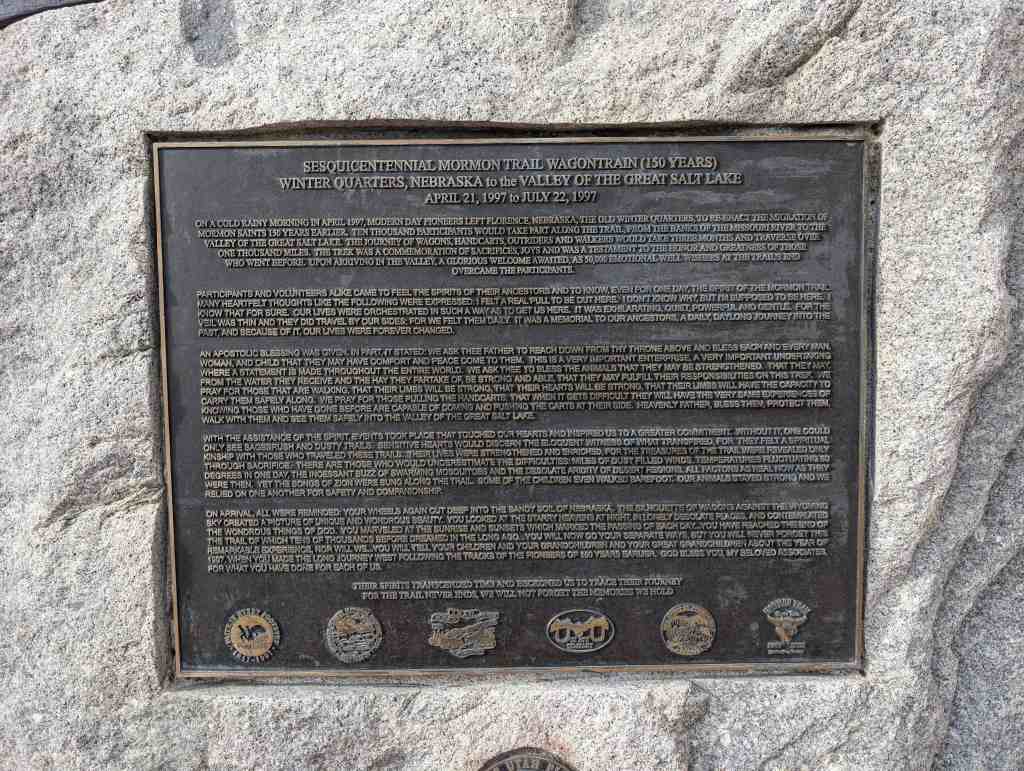 Sesquicentennial Mormon Trail Wagon Train (150 Years) Winter Quarters, Nebraska to the Valley of the Great Salt Lake April 21, 1997 to July 22, 1997.