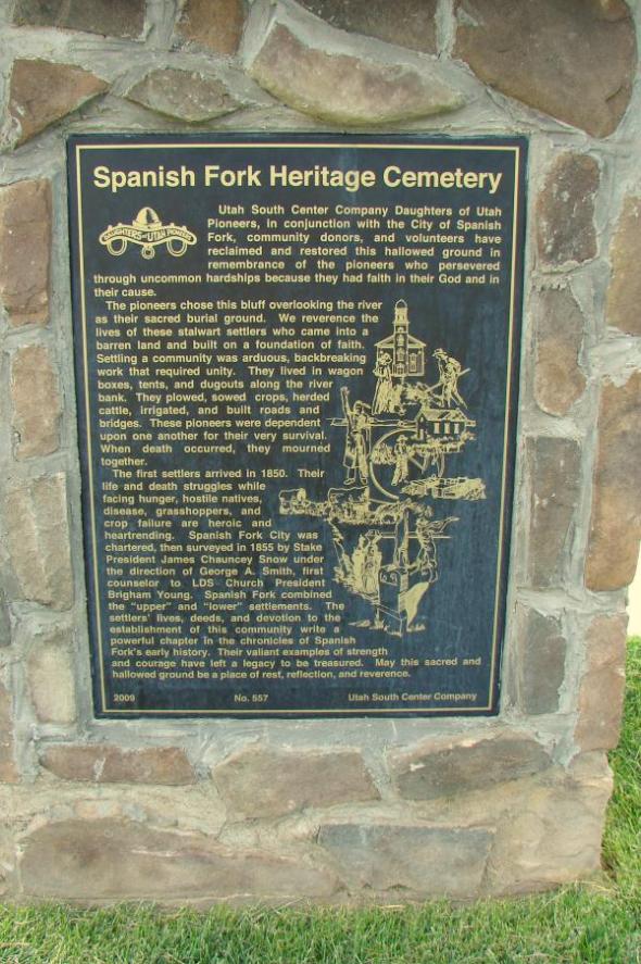 Located at the Pioneer Heritage Cemetery in Spanish Fork, Utah