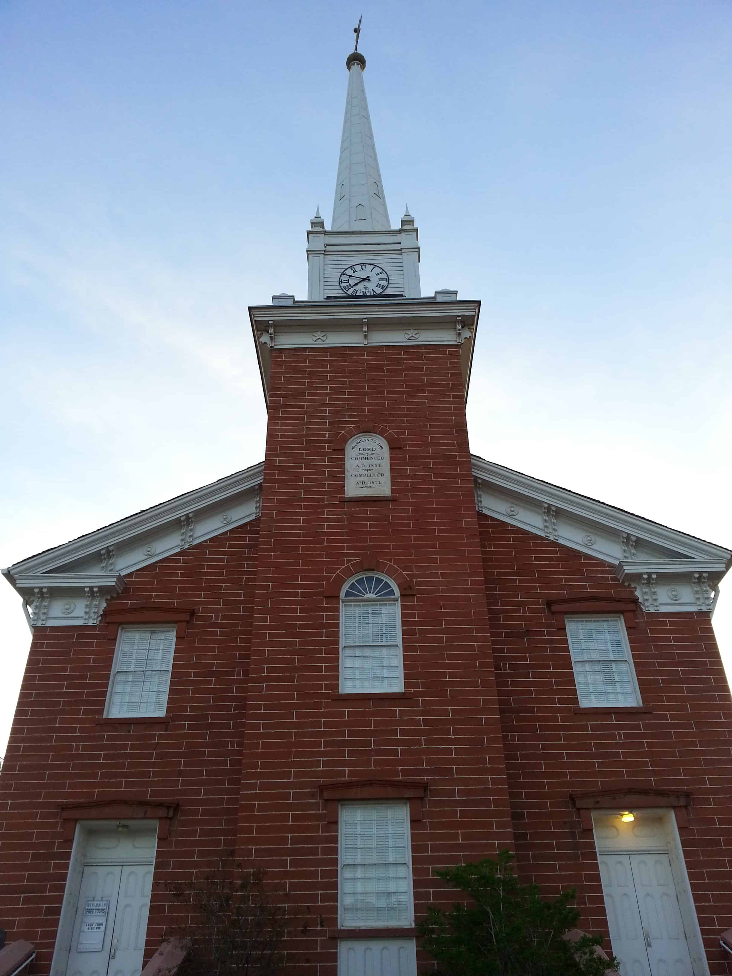 Less than a year after St. George was settled, residents were directed by Brigham Young to “build a building as soon as possible which would be commodious, substantial and well furnished with a seating capacity of 2,000.” The building, he said, should be a “ornament” to the city and a credit to its people’s “energy and enterprise.” The result is the handsome and graceful red sandstone building one block south of here known as the St. George Tabernacle.