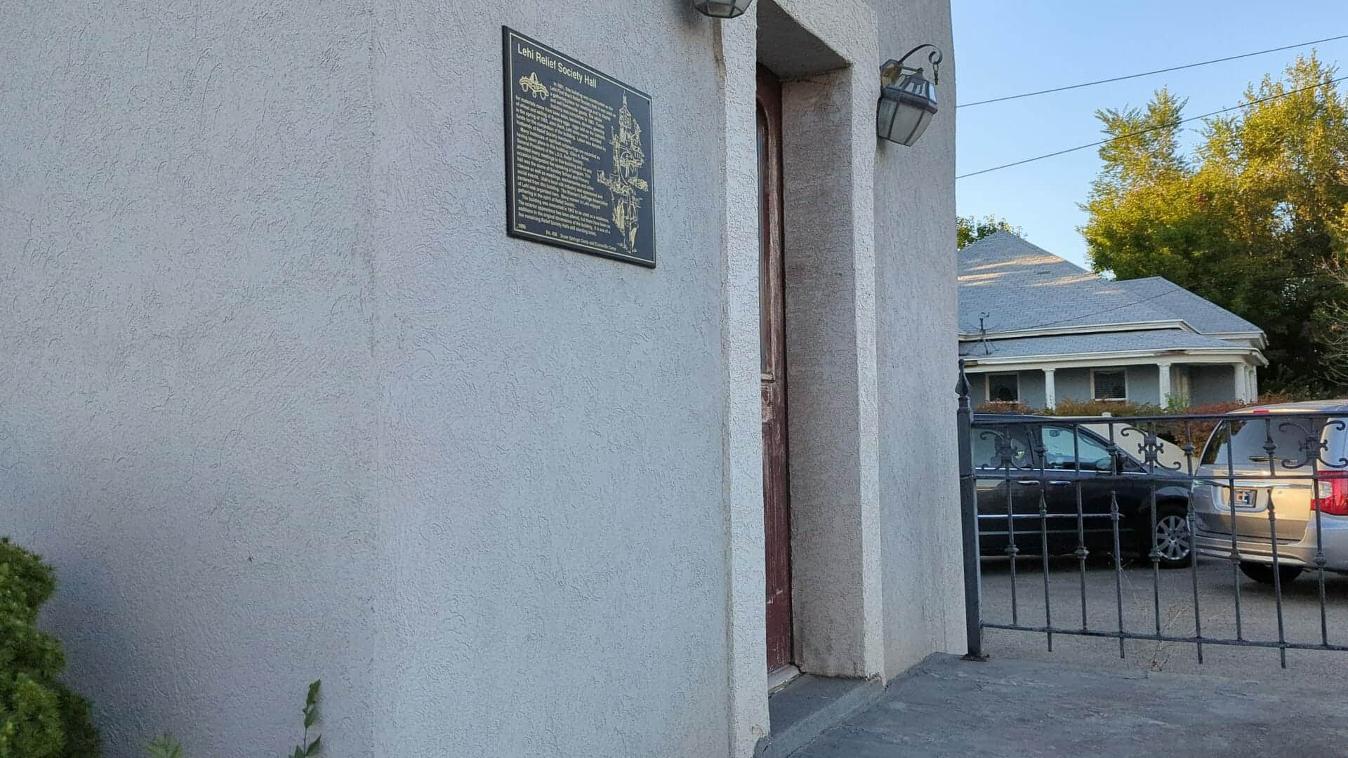 In 1881, this building was constructed as the Lehi First Ward Relief Society Hall. It was used as a gathering place for meetings and to display and sell homemade goods. The adobe building was completed in 1883. Funds for materials came from bake sales, bazaars, dinners, gleaning of wheat and selling of Sunday eggs – eggs laid on the Sabbath. In the spring of 1883, John Beck, Lehi mine owner, provided funds for the completion of the building. Labor was donated by husbands of Relief Society members.