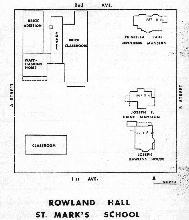In 1880 Reverend Kirby received title for the property on behalf of his mother-in-law, Mrs. Rowland. The title was then put in the name of Bishop Tuttle. The property is now in the name of the school but if for any reason the school is closed, the property would be returned to the Episcopal diocese of Utah.