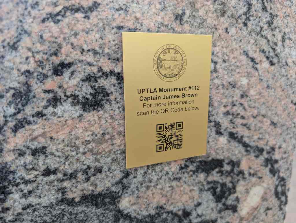 This monument erected by descendants of Captain James Brown, Citizens of Weber County and the Utah Pioneer Trails and Landmarks Association.
