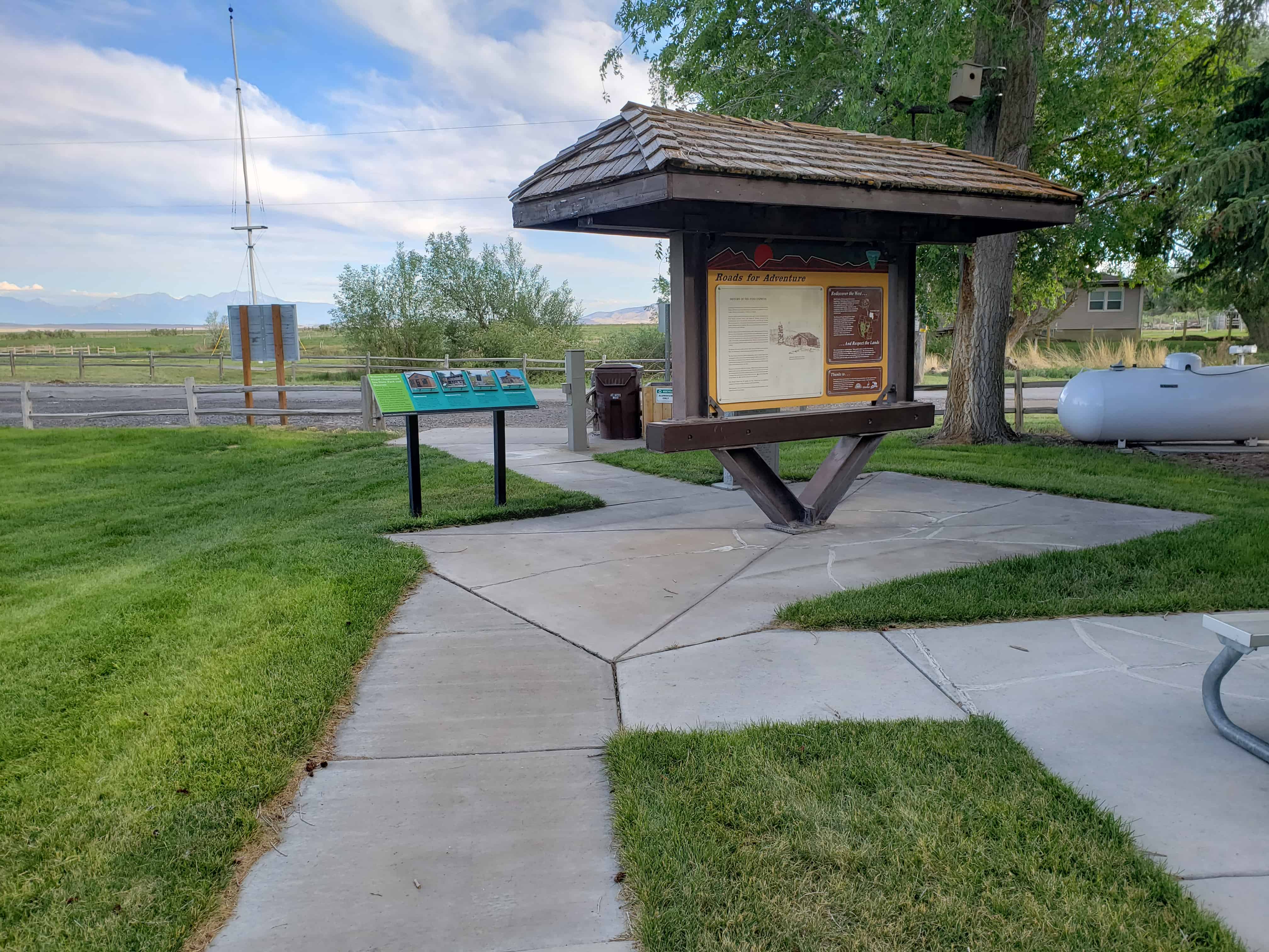 An Overland stage station established in 1859 was operated until 1868 and a Pony Express Station from April 3, 1860 to October 26, 1861. The station was 539 feet East and 210 feet North of this point.