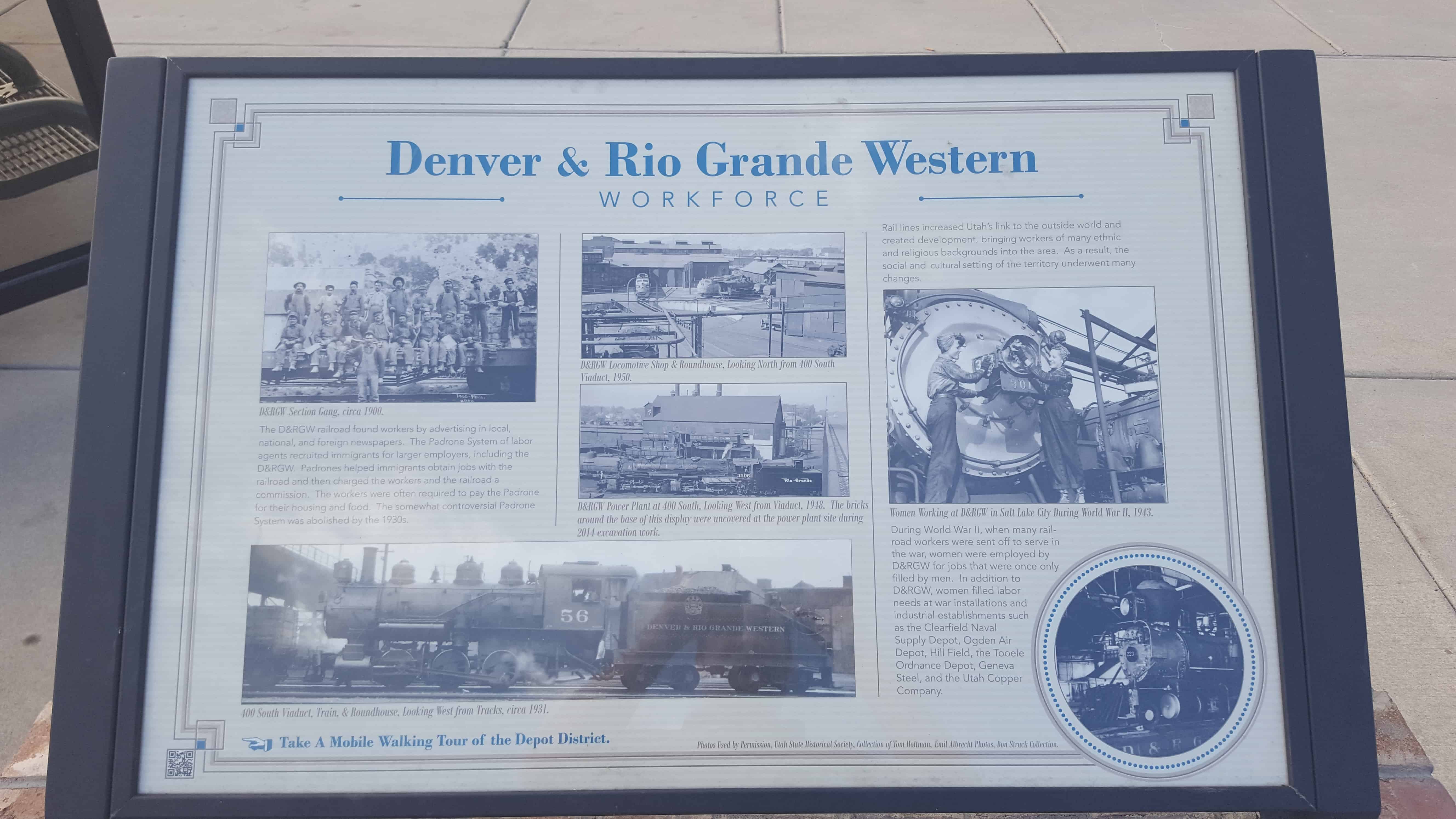 The large building to the west of the current station here is known as the Locomotive Shop. The building originally opened June 2, 1924. as part of a $1,500,000 renovation of the Denver and Rio Grande Western (D&RGW) railroad shops at Fifth West (now 600 West) and Third South. The new shops included locomotive shop, a roundhouse, a wood car shop, a steel car shop, and a storehouse. Heavy maintenance and engine servicing occurred in the Locomotive Shop, while routine servicing took place at the other shops. The site operated as a railroad maintenance facility until the late 1950s. As of 2015, the Locomotive Shop and the site are being used by the Utah Transit Authority (UTA) for a new bus maintenance facility. UTA was able to preserve the Locomotive Shop, although several other buildings on the site had to be demolished to make room for the new bus facility.