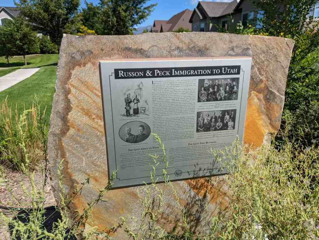 The Russon & Peck Immigration to Utah historic marker is located here.