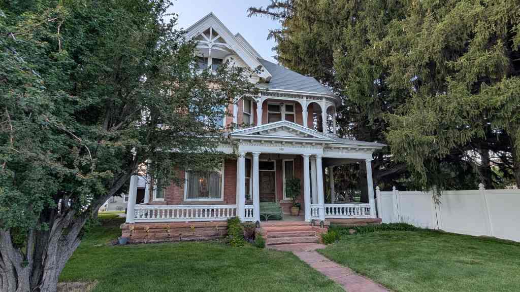 Constructed in 1903 by Herbert Clegg for John E. Austin, a leading sheepman in Wasatch County. In 1908 Austin moved to Wyoming and the house was sold to Dr. William Russell Wherritt. A native of Missouri, Dr. WM. Wherritt for many years was the only physician in the Heber Valley. He loved his profession and he greeted his patients with a smile. He died of a heart attack in his forty-ninth year of medical practice. Mrs. Emma Hatch Wherrit was the bookkeeper and office assistant to her father in A. Hatch & Co. She served as the chair of the American Red Cross, organized the American Legion auxiliary and was the charter member of the Business and Professional Women’s Club. Emma served as president of the Wasatch Camp, Daughters of the Utah Pioneers. The house is one of the most elaborate Victorian homes in Heber Valley.
