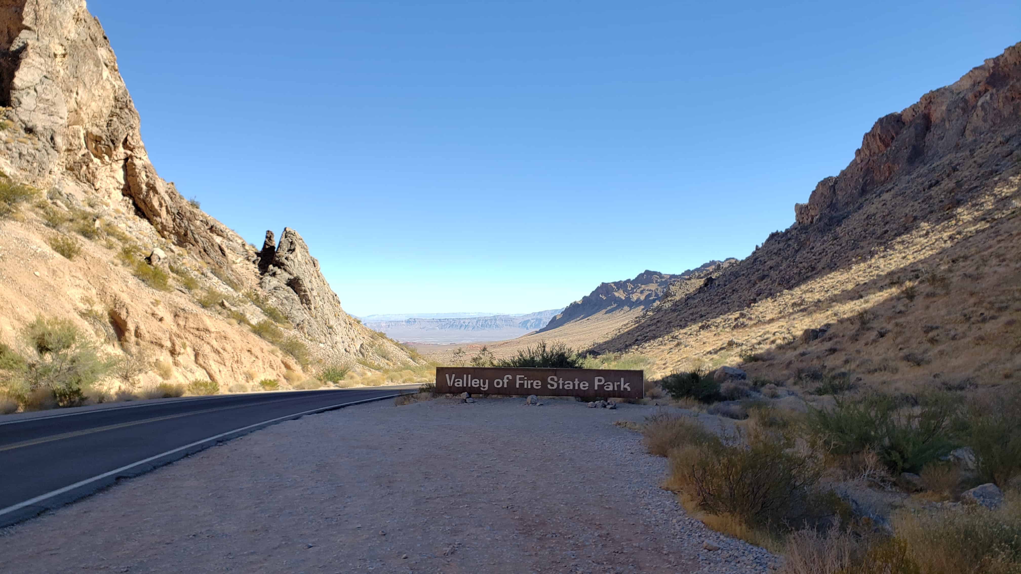 (*)Valley of Fire State Park is a public recreation and nature preservation area covering nearly 46,000 acres located 16 miles (26 km) south of Overton, Nevada. The state park derives its name from red sandstone formations, the Aztec Sandstone, which formed from shifting sand dunes 150 million years ago. These features, which are the centerpiece of the park’s attractions, often appear to be on fire when reflecting the sun’s rays. It is Nevada’s oldest state park, as commemorated with Nevada Historical Marker #150. It was designated as a National Natural Landmark in 1968.