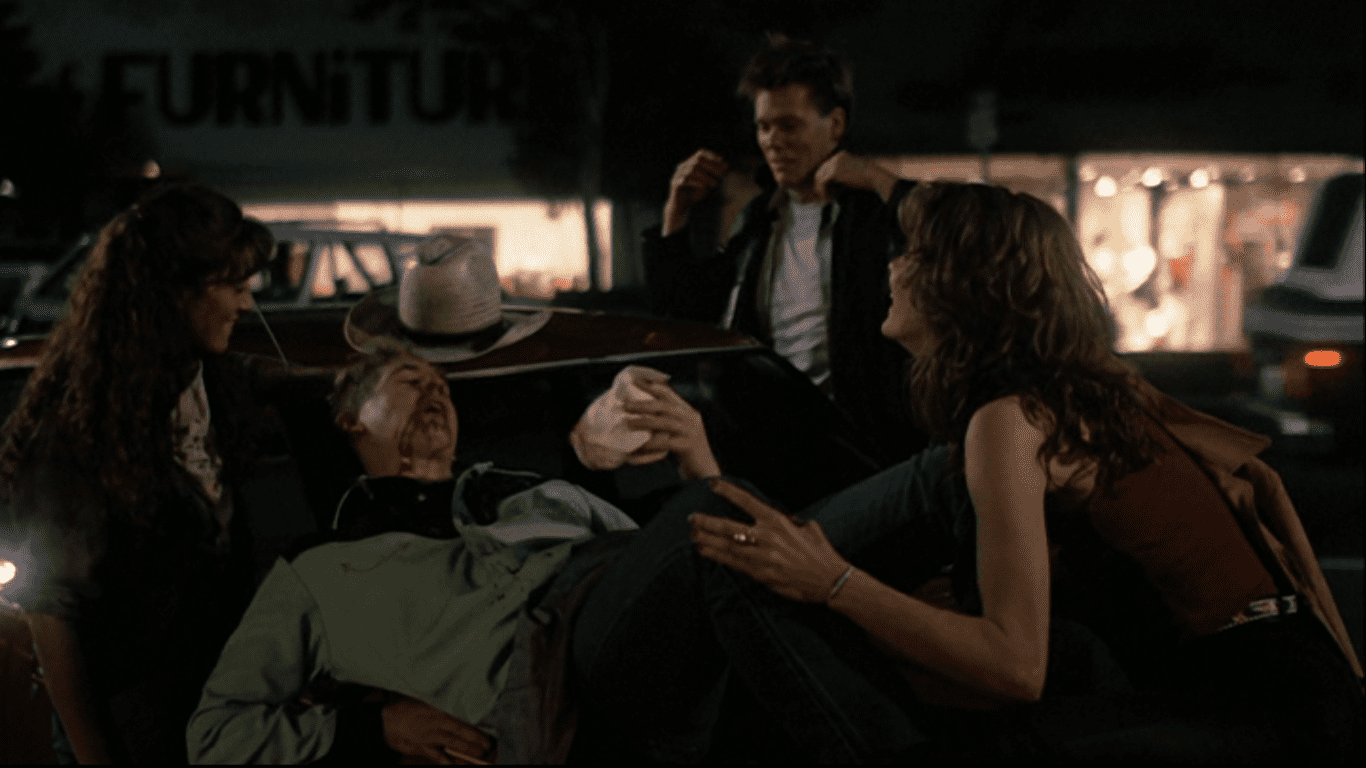 Ren takes the others across the state line to show them what real dancing is like in the movie Footloose (1984).