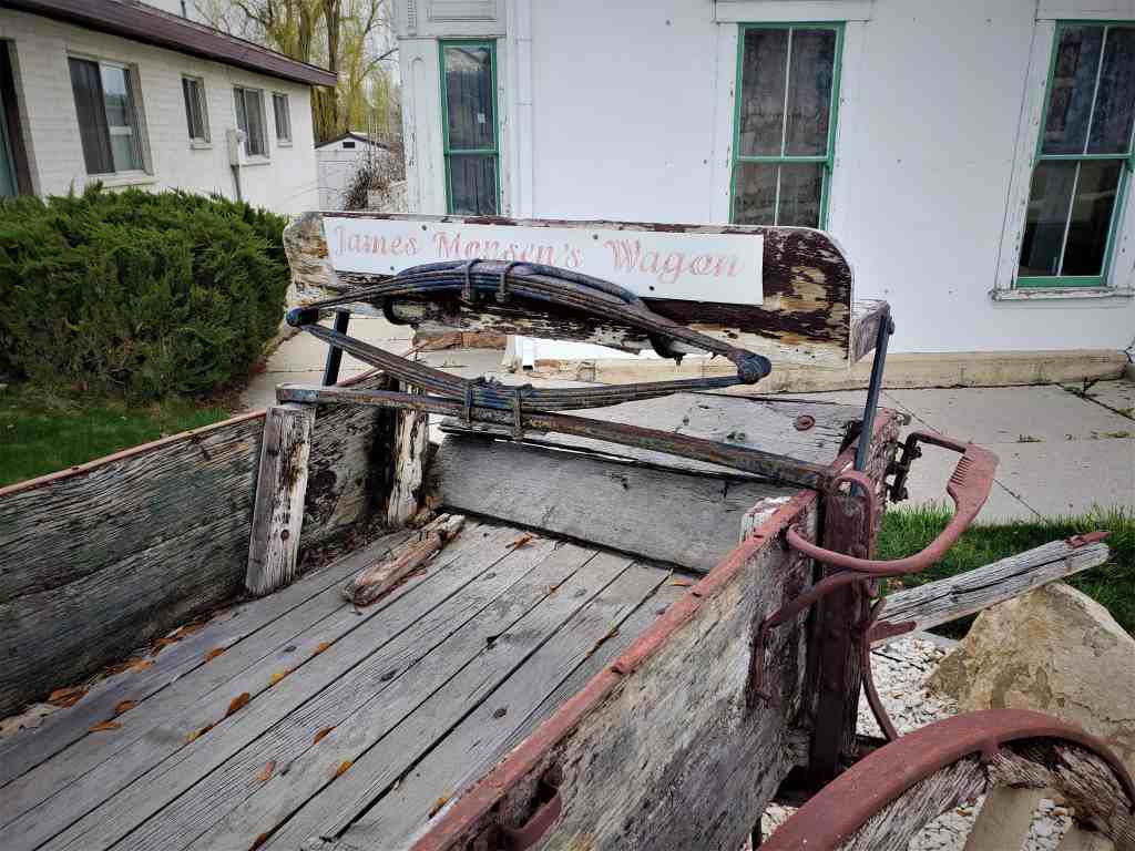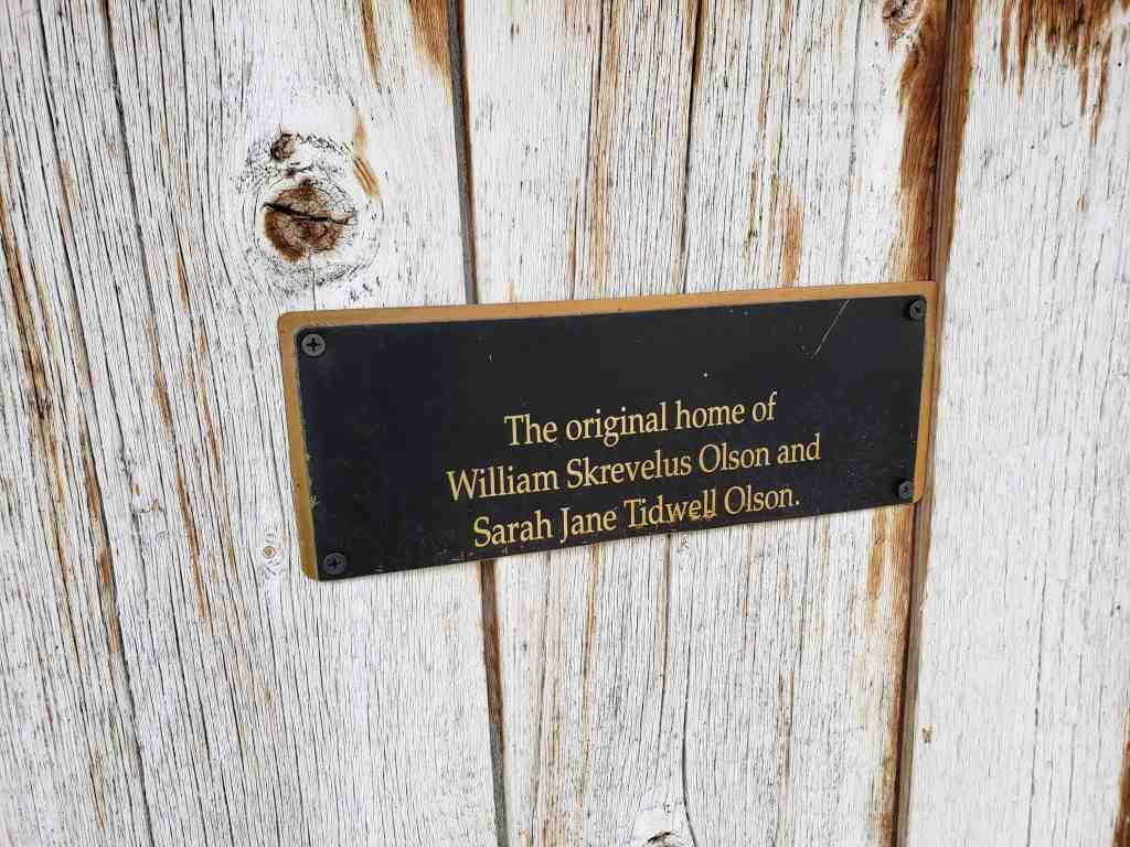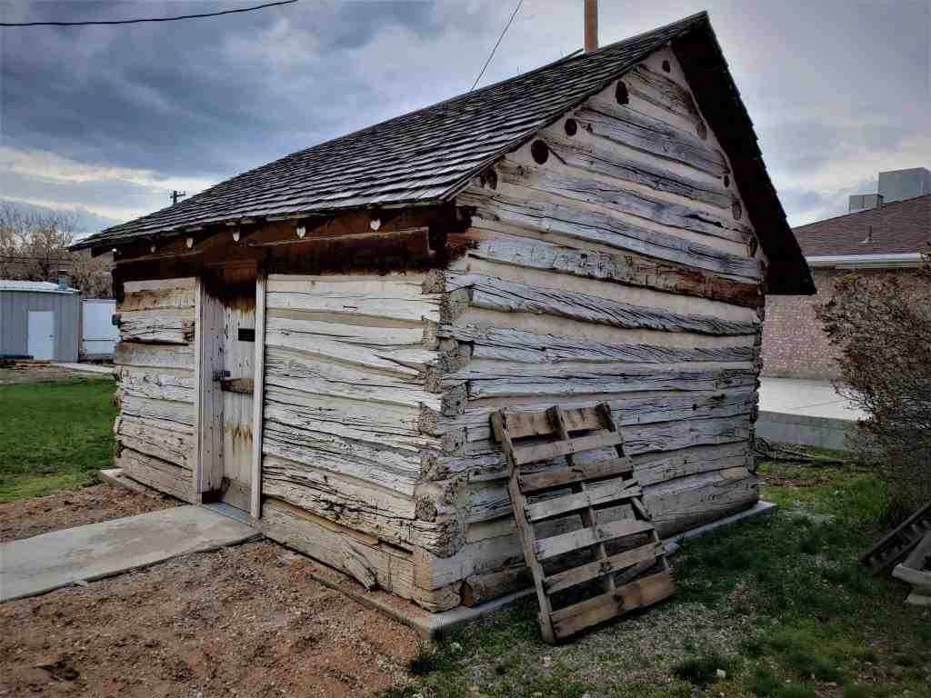 The cabin outside the relic home was previously located at the William Skrevelius Olson Home.