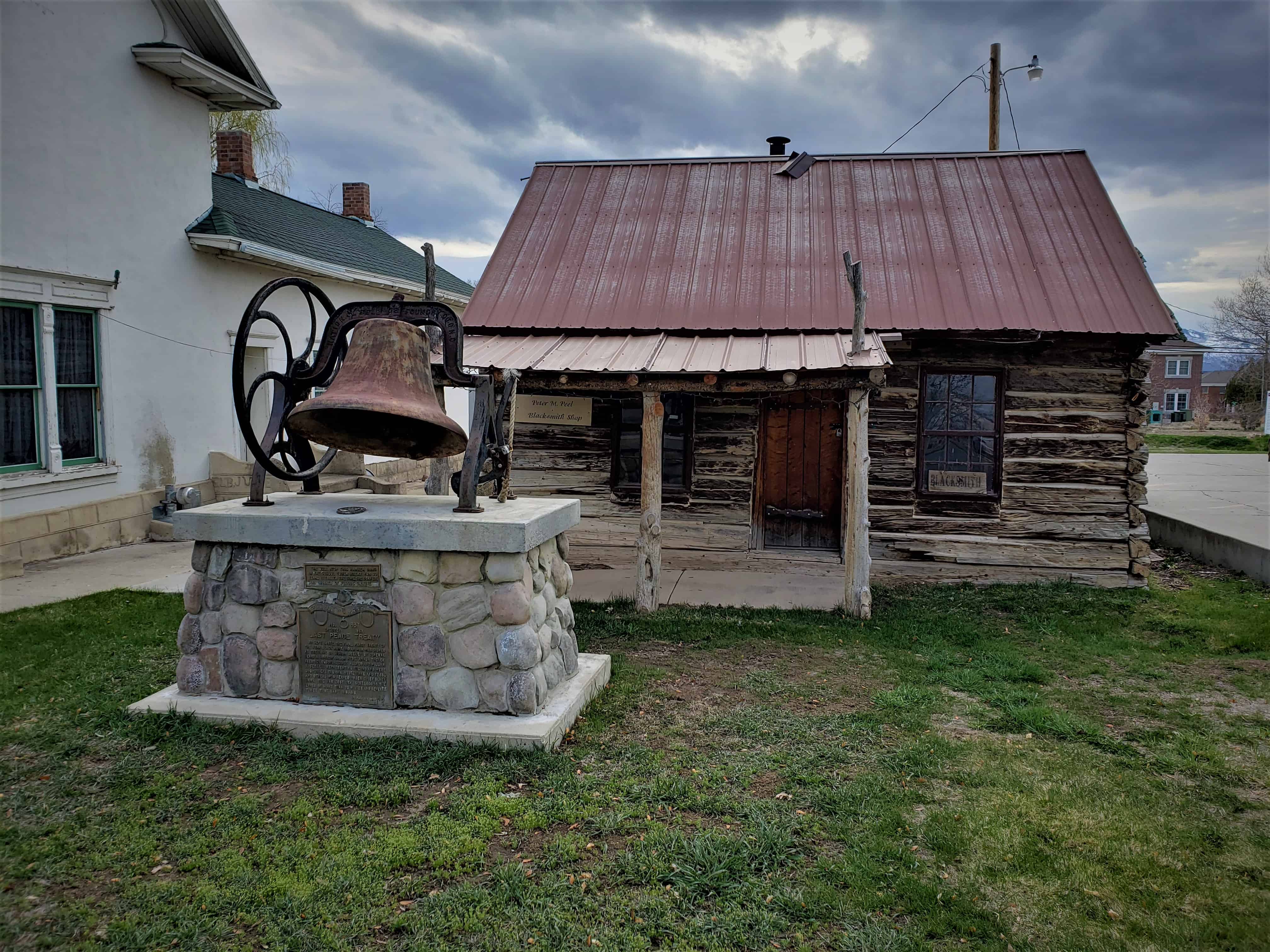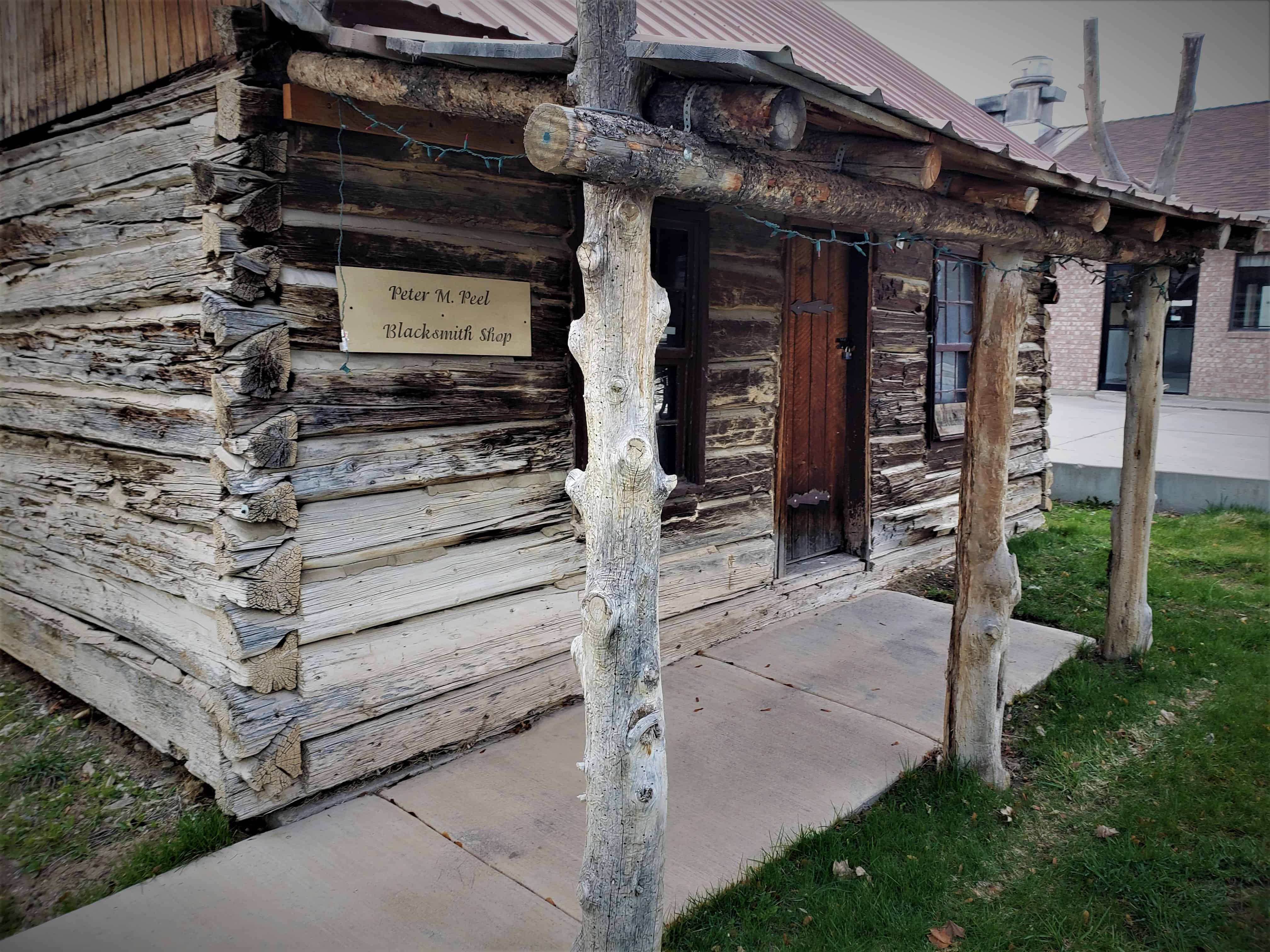 The cabin outside the relic home was previously located at the William Skrevelius Olson Home.