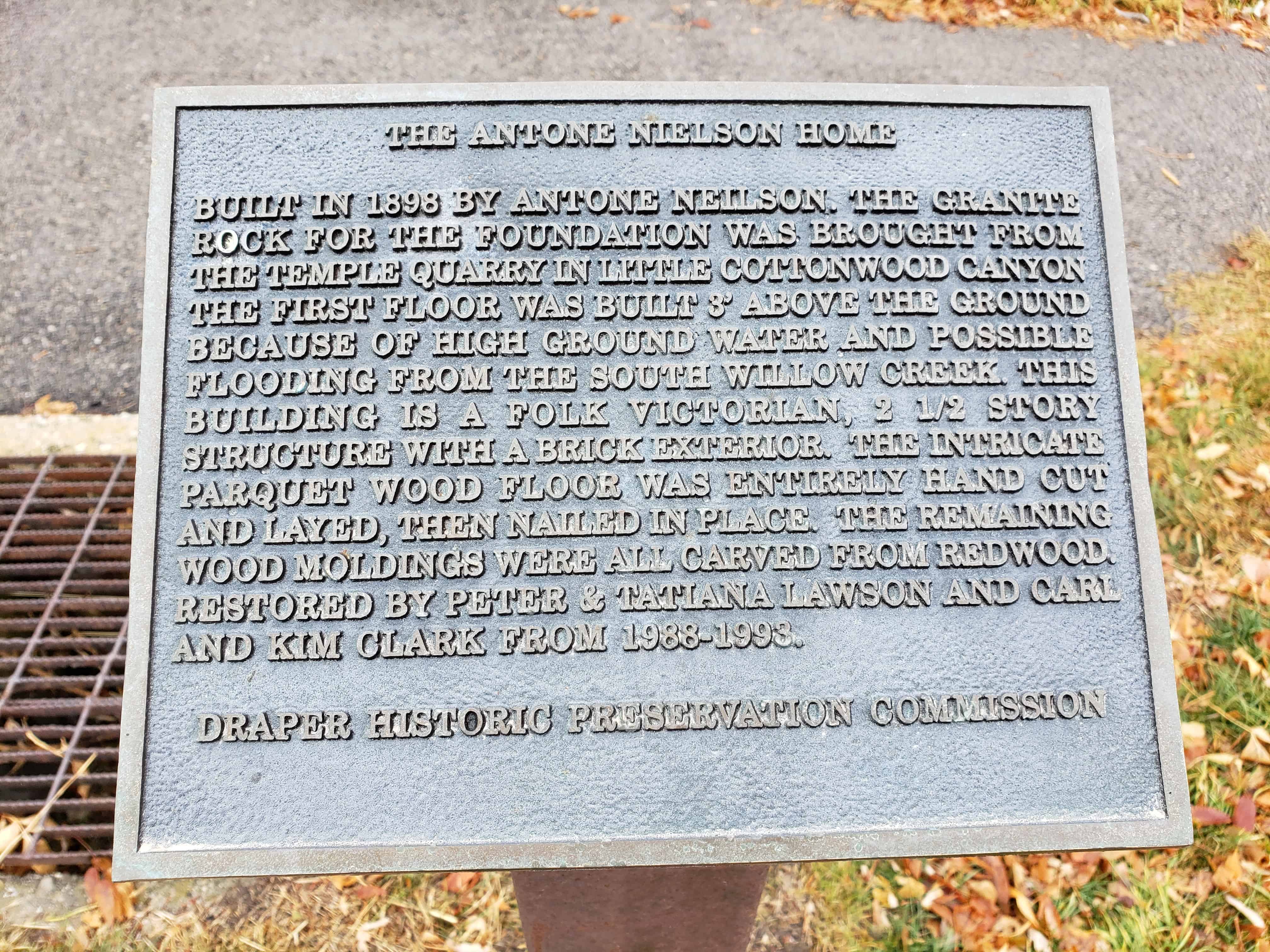 Built in 1898 by Antone Nielson, the granite rock for the foundation was brought from the temple quarry in Little Cottonwood Canyon.