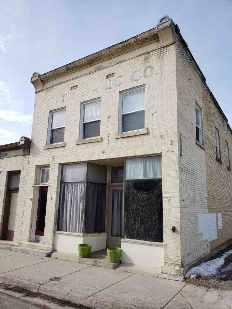 I don’t know the history of this building yet but the fading “City Drug Co.” on the face is pretty cool.