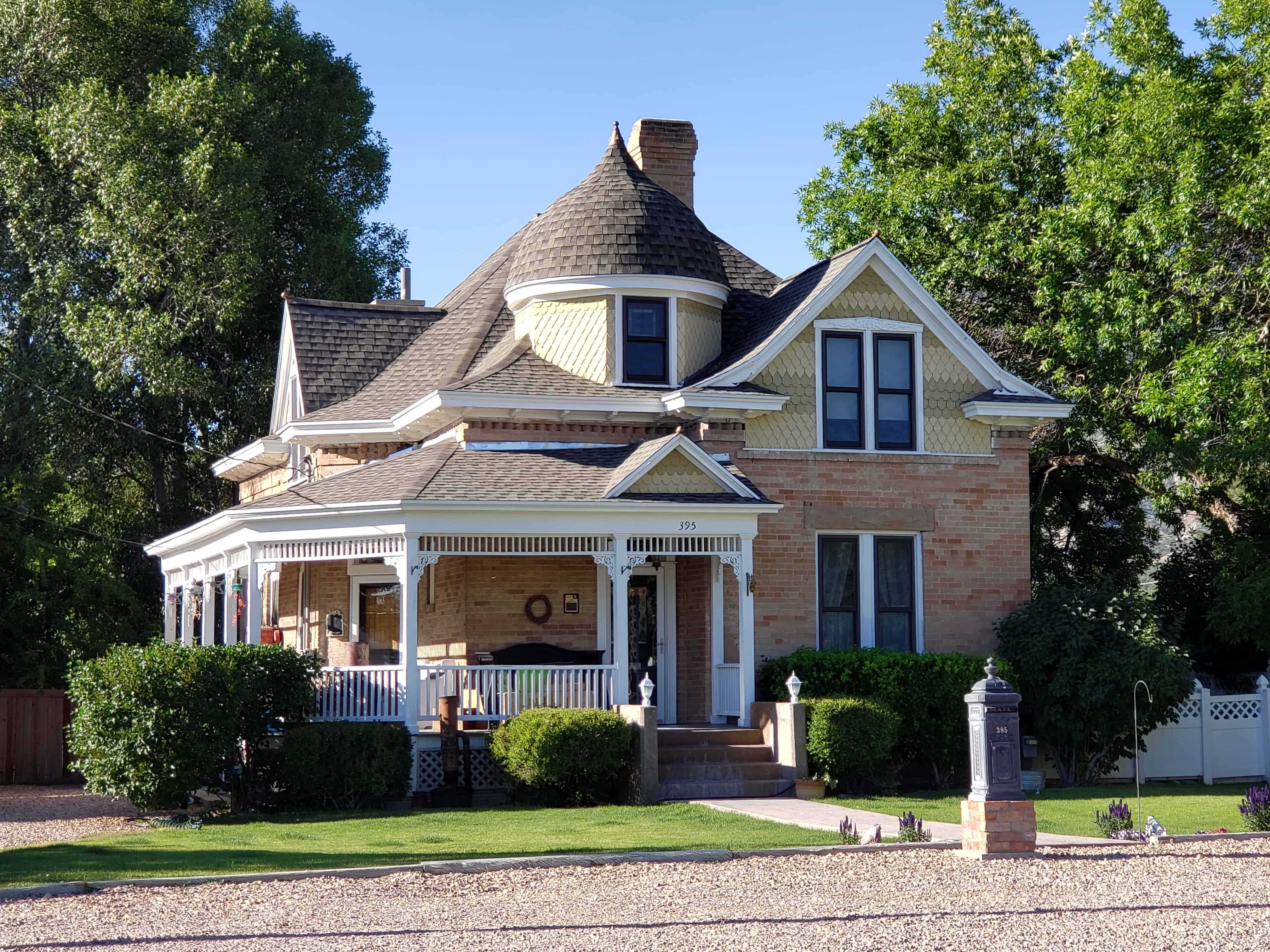 Constructed in 1893 by Oscar M. Booth, this house is an excellent example of the Queen Anne architectural style in Utah. Some identifying features of the home include its side-hall plan, asymmetrical massing, long wrap-around porch, and the octagonal tower with conical roof. Mr. Booth was a local carpenter and builder who is best known in the Nephi area for his design of the Whitmore Mansion, listed on the National Register. It is also reported that in addition to the work Booth did in Nephi, he also worked in the Avenues in Salt Lake City during the 1890s. He was born in 1868 in Utah and continued his building activities, primarily in Juab County, until his death in 1944. Mr. Booth, along with his wife rose, owned this home until 1897, when it was then sold to another local resident of Nephi. The home retains its historic integrity and is a contributing resource within the city of Nephi.