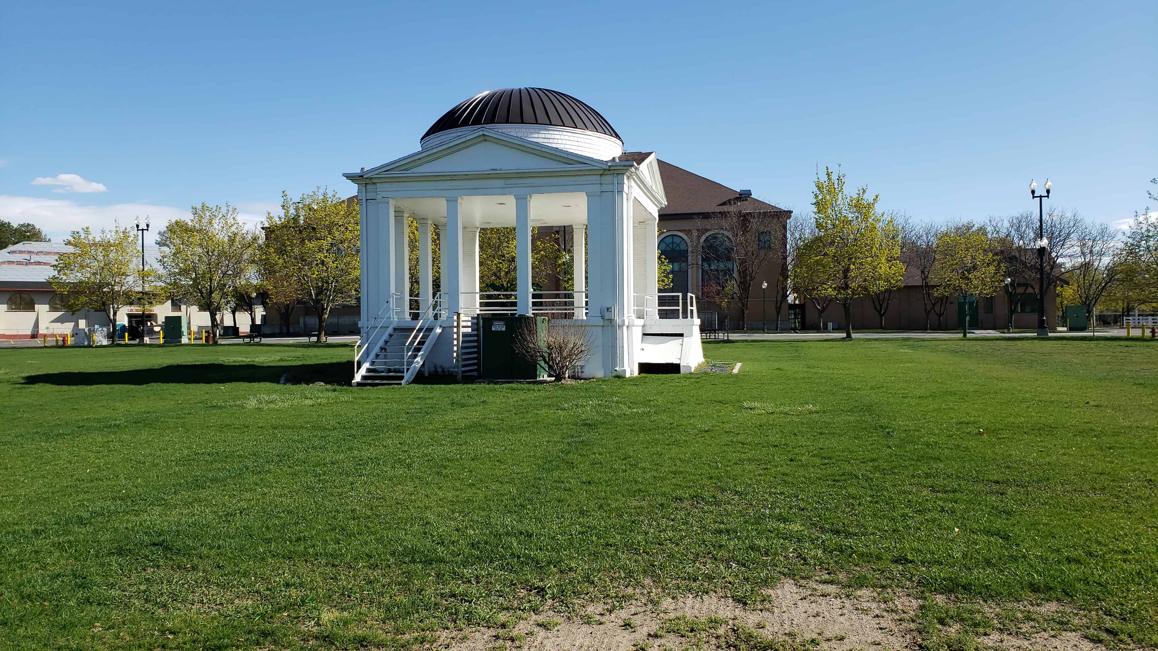 - (16) Bandstand: ca. 1910, a raised open pavilion of square plan designed in the classical revival style. A pedimental dome is supported by classically derived columns.