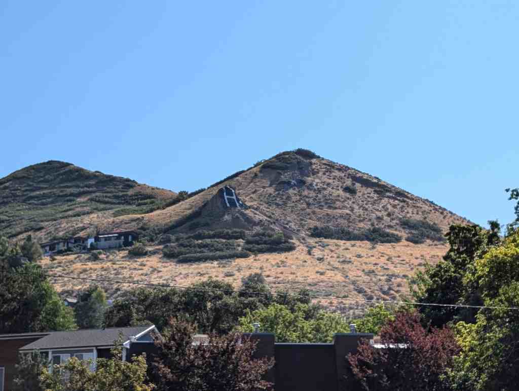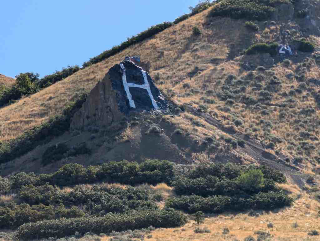 The large letter H on the foothills above eastern Salt Lake for Highland High School.