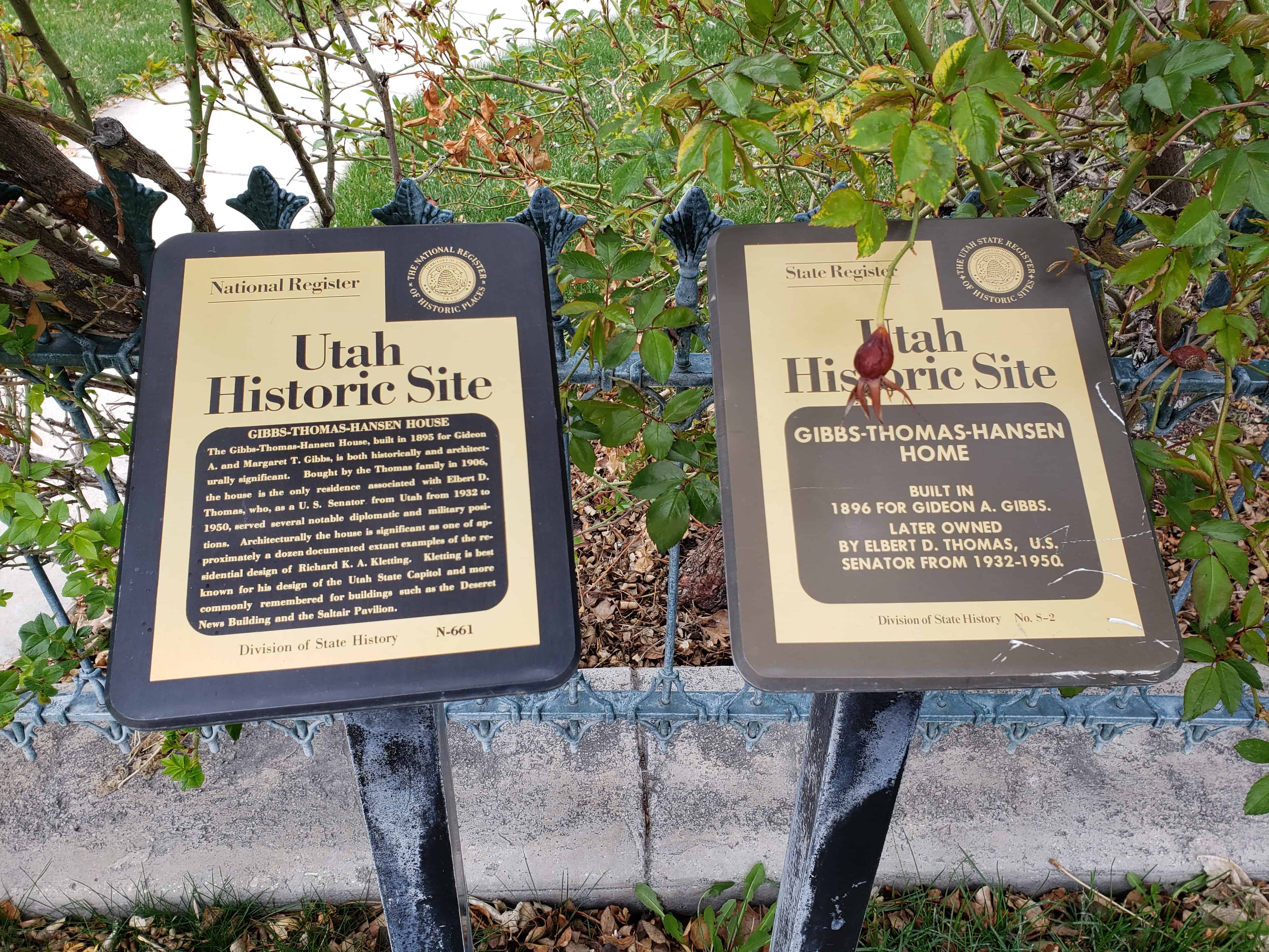 The Gibbs-Thomas-Hansen House, built in 1895 for Gideon A. and Margaret T. Gibbs, is both historically and architecturally significant. Bought by the Thomas family in 1906, the house is the only residence associated with Elbert D. Thomas, who, as a U. S. Senator from Utah from 1932 to 1950, served notable diplomatic and military positions. Architecturally the house is significant as one of approximately a dozen documented extant examples of the residential design of Richard K.A. Kletting. Kletting is best commonly remembered for buildings such as the Deseret News Building and the Saltair Pavilion.