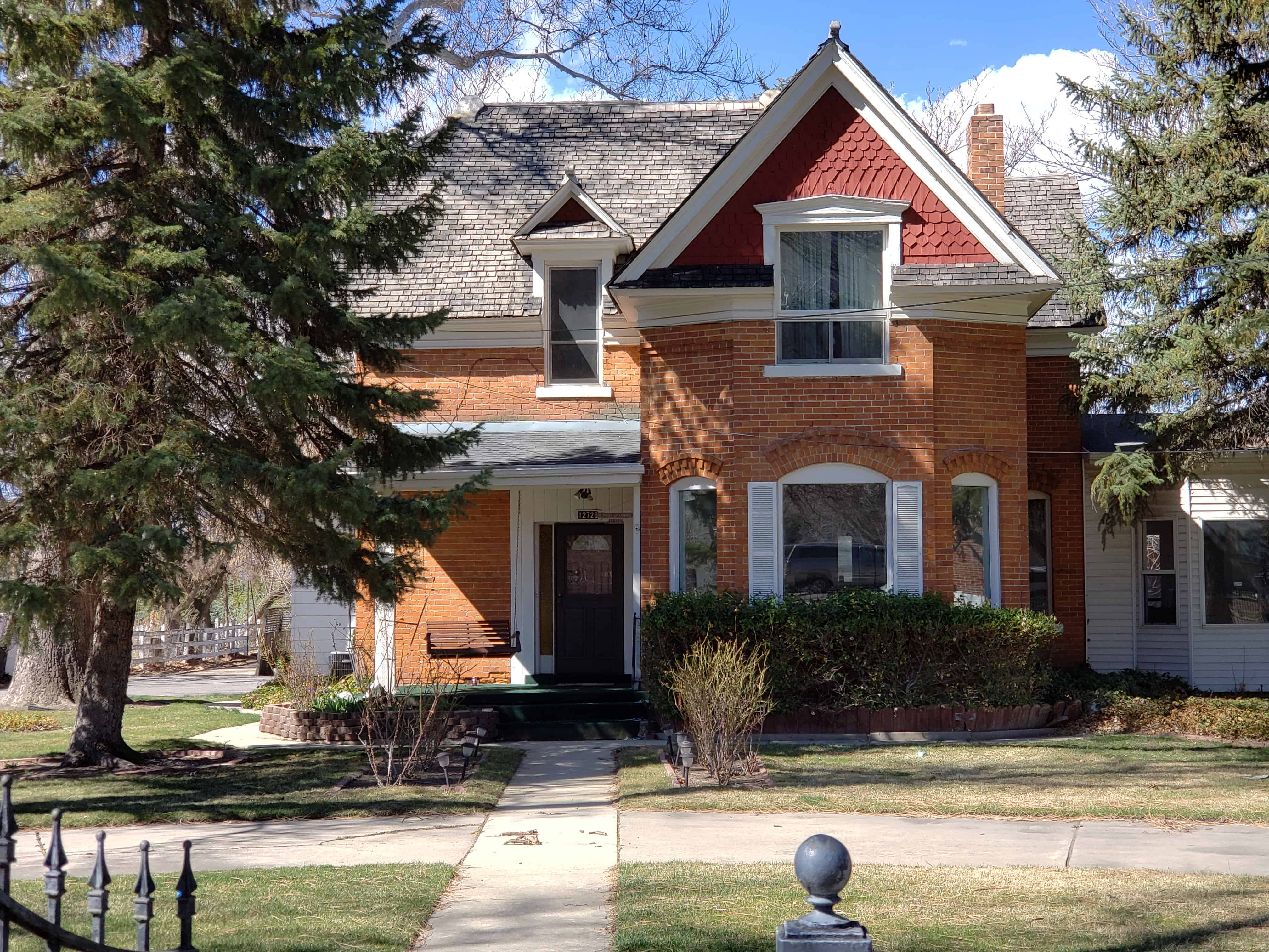 Built 1899-1900. The Dunyons lived in this home until the depression. In 1940 W.B. Enniss purchased the home and in 1956 it was purchased by its present owners. This 1 and 3/4 story Victorian style building is built from orange brick. The home has always been a family home. It has been modernized over the years as new inventions came along. It is now modern for the time. This was one of the first large Victorian homes built in Draper. It was the first to have electric lights. Restored by R. Parry and Pauline Greenwood from 1956-1993.