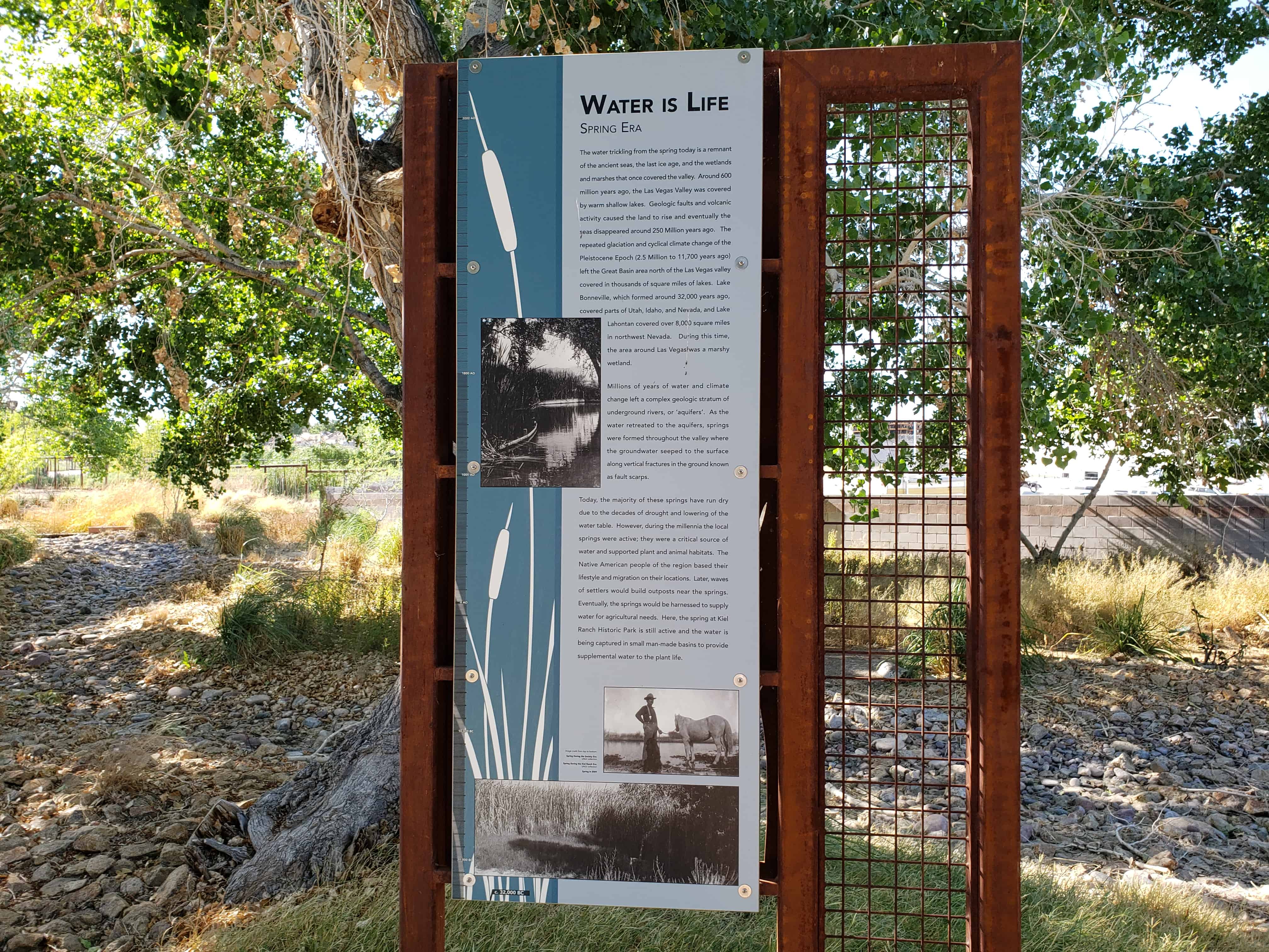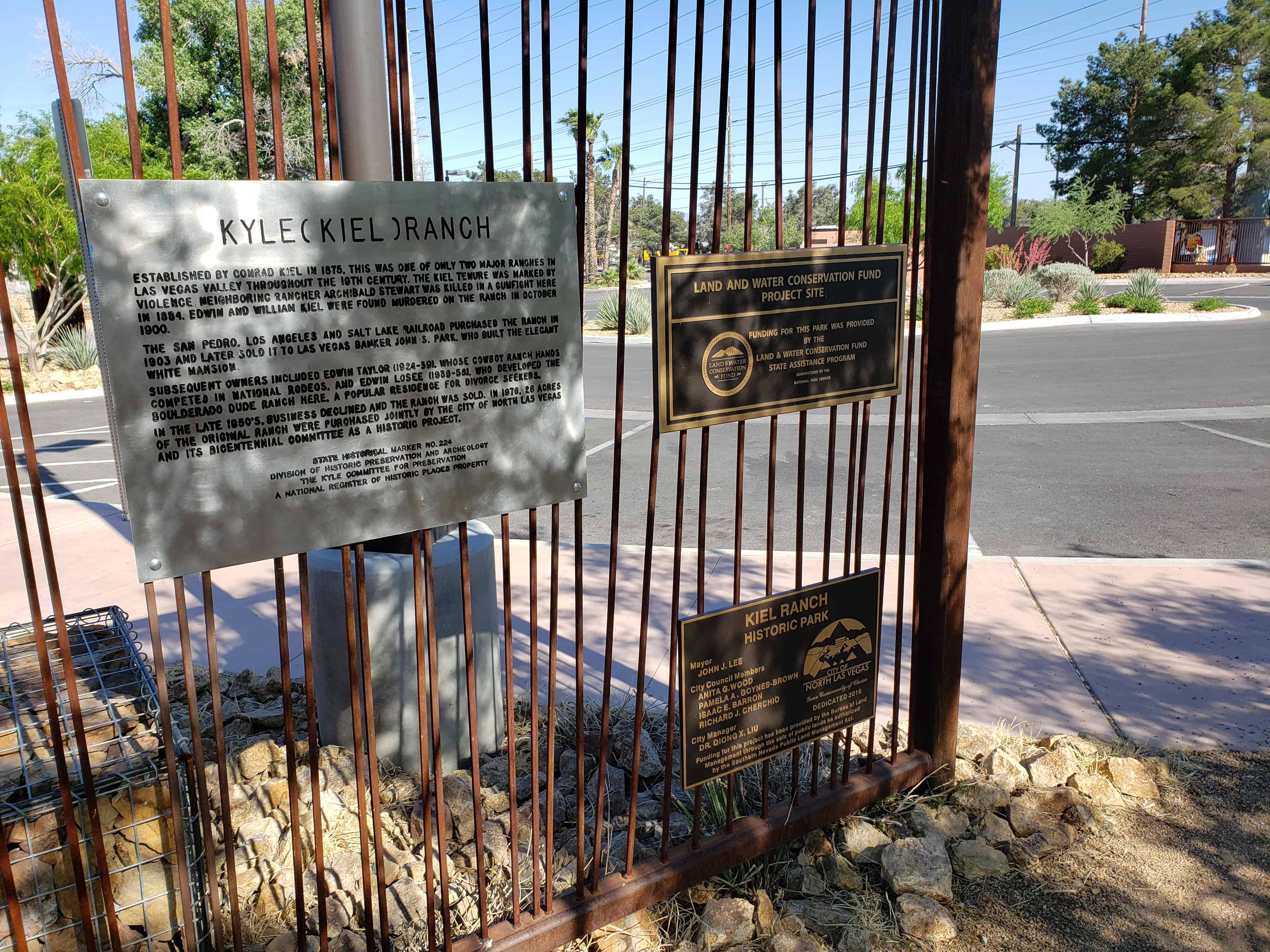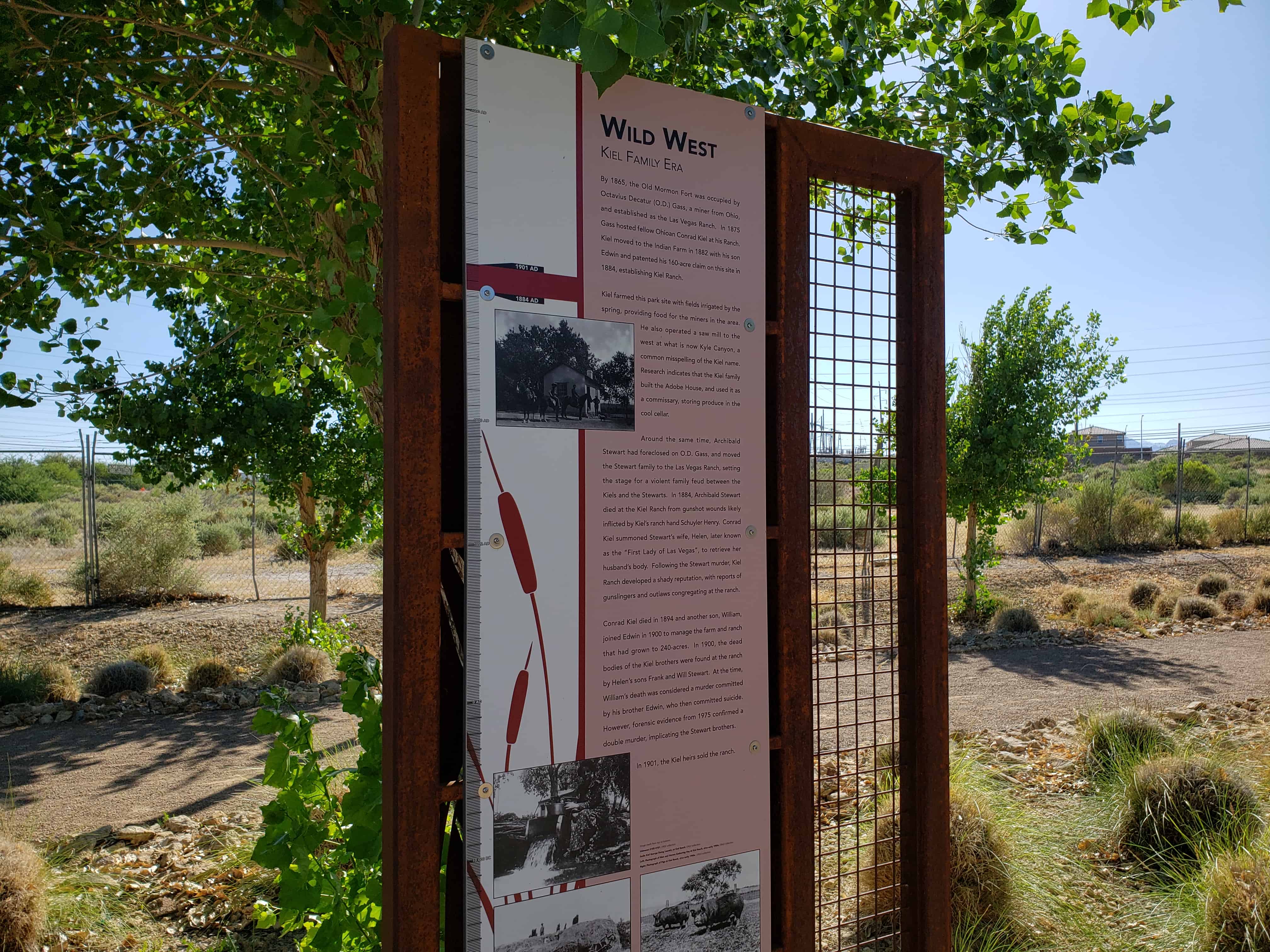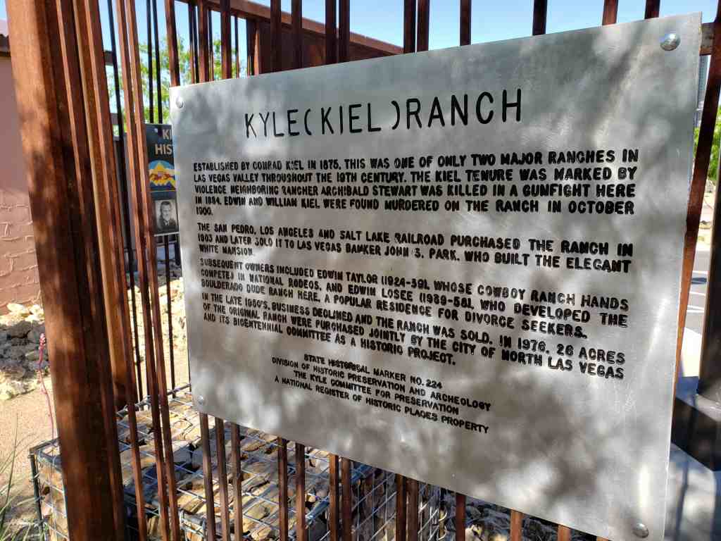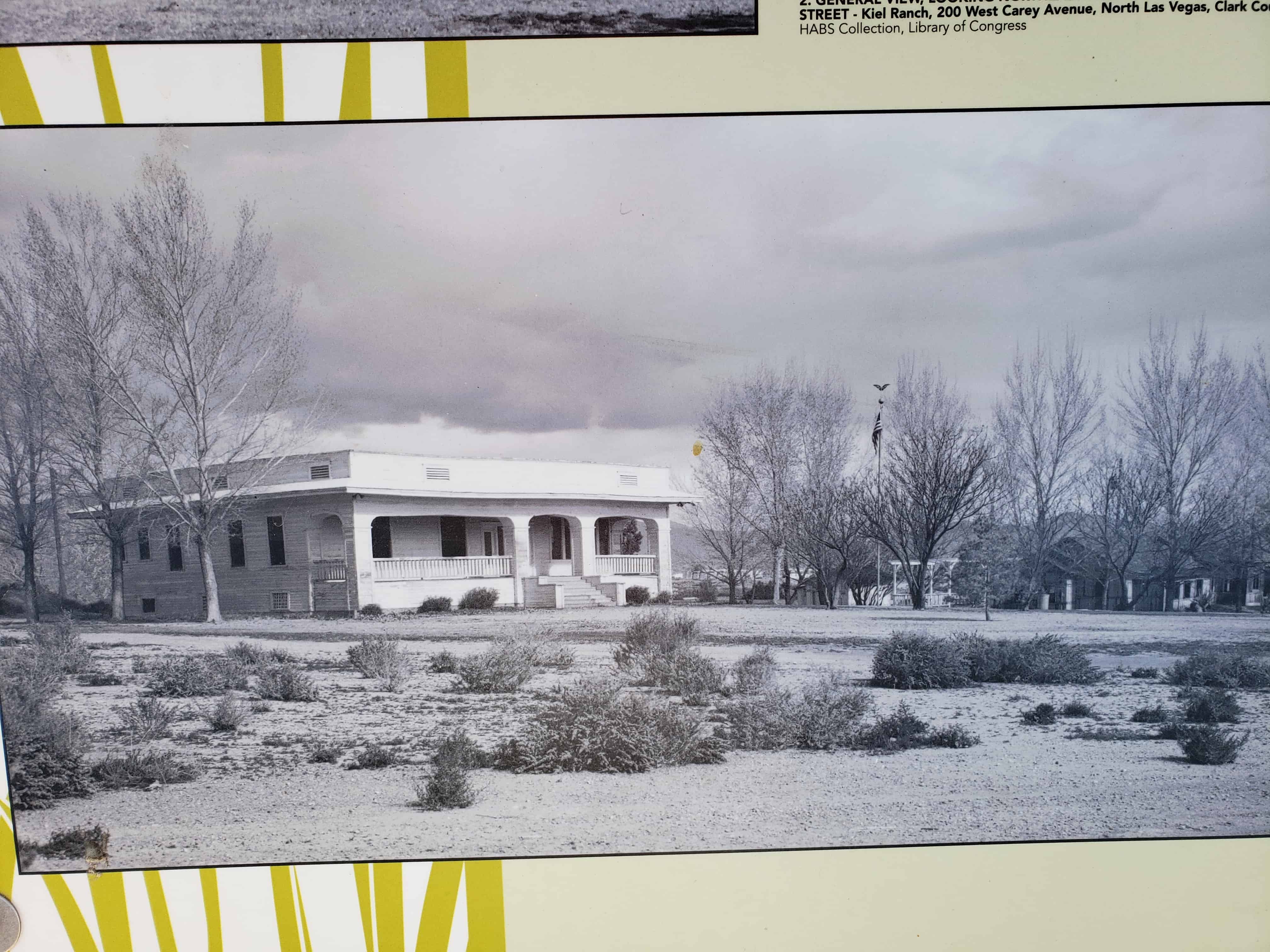 Established by Conrad Kiel in 1875, this was one of the only two major ranches in Las Vegas Valley throughout the 19th century. The Kiel tenure was marked by violence. Neighboring rancher Archibald Stewart was killed in a gunfight here in 1884. Edwin and William Kiel were found murdered on the ranch in October 1900.