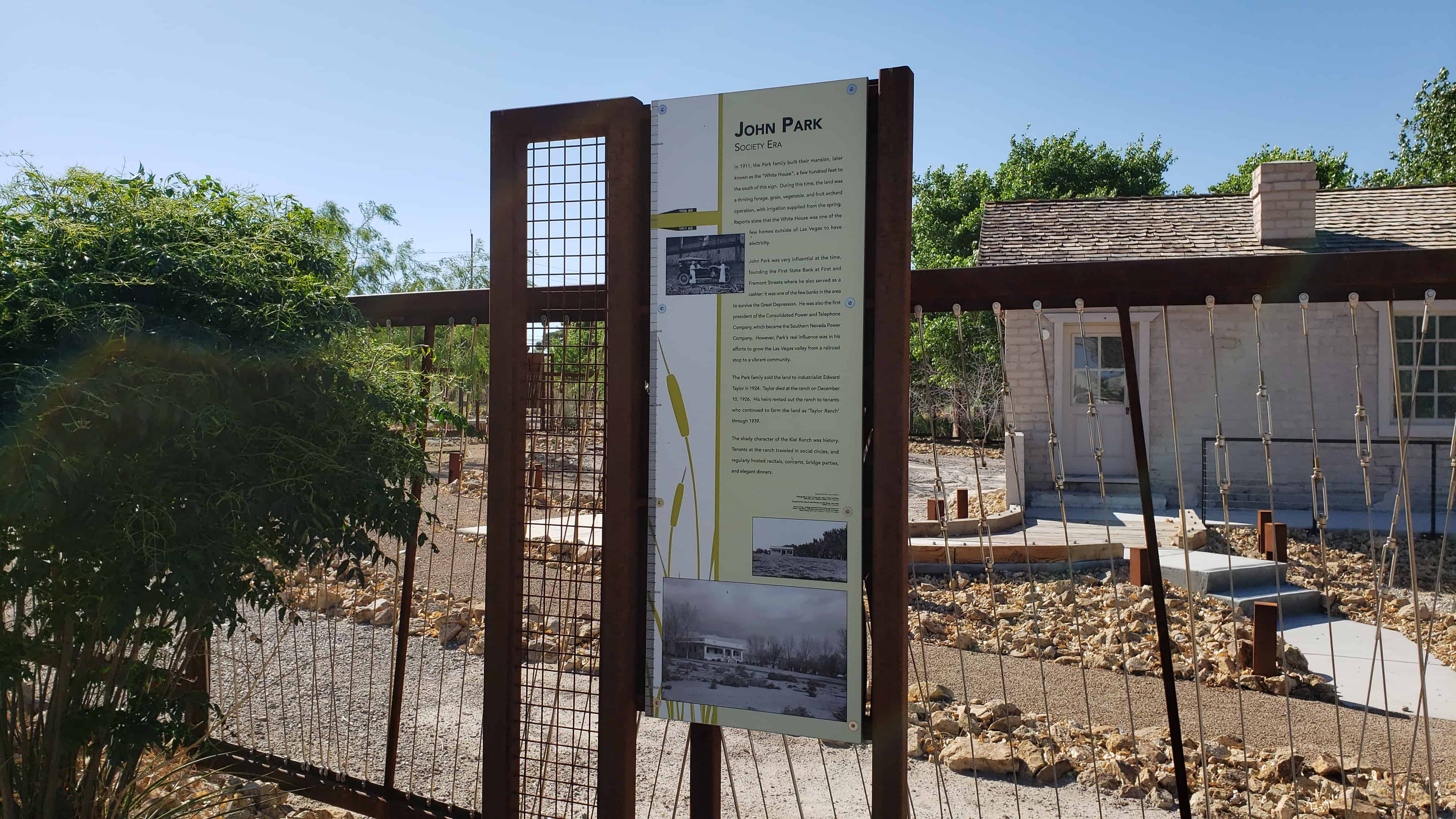 The San Pedro, Los Angeles and Salt Lake Railroad purchased the ranch in 1903 and later sold it to Las Vegas banker John S. Park, who built the elegant white mansion.