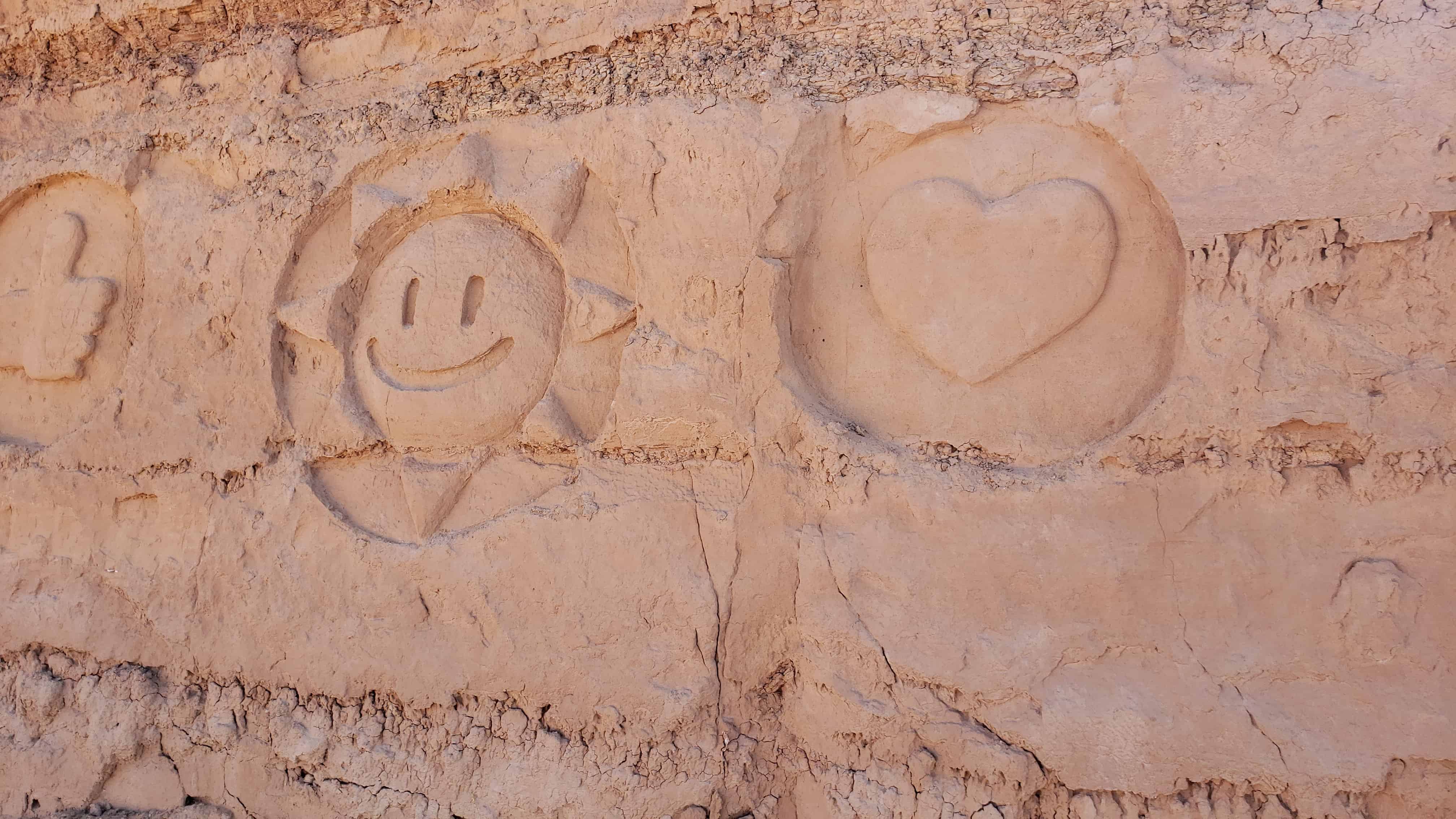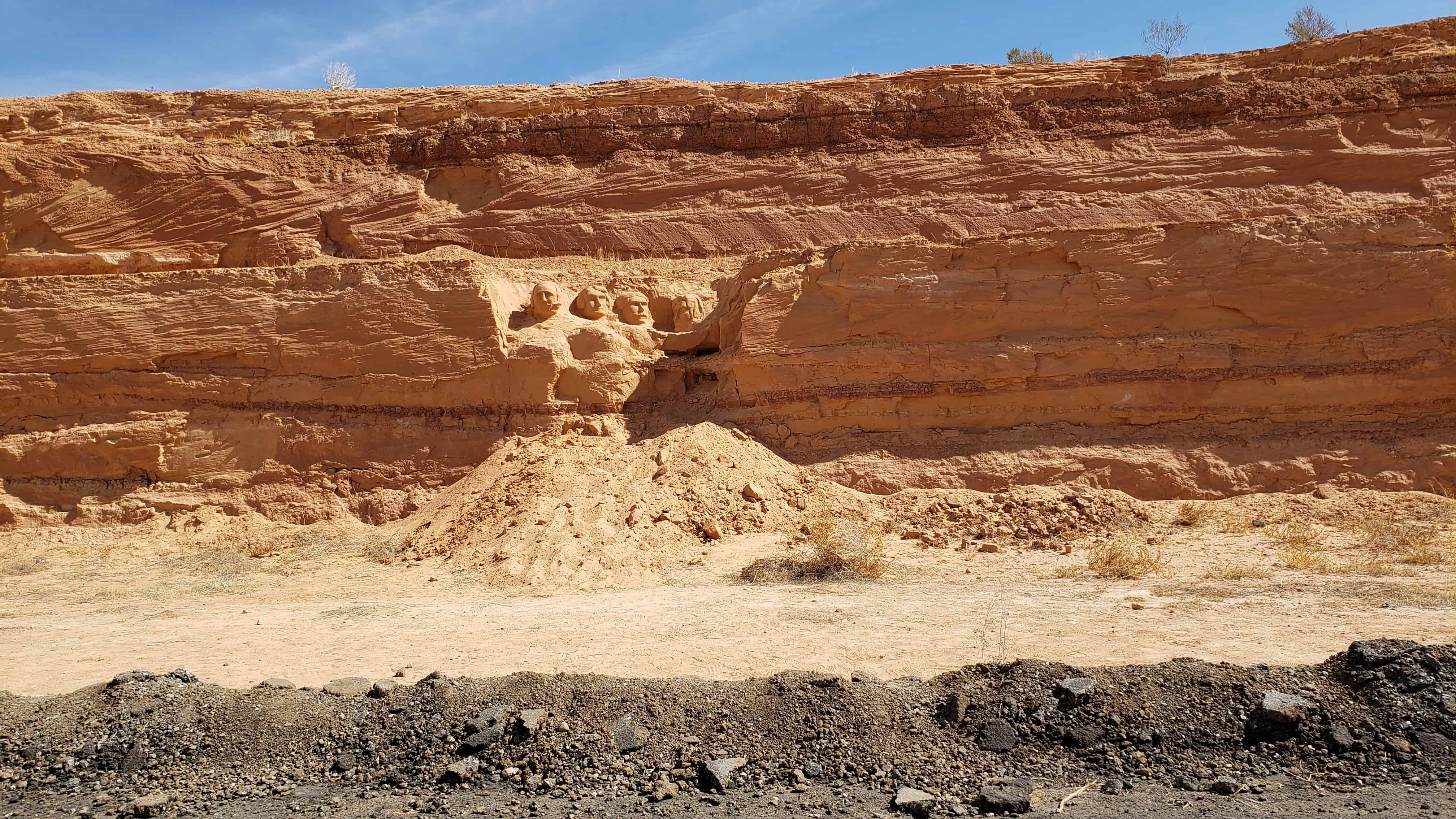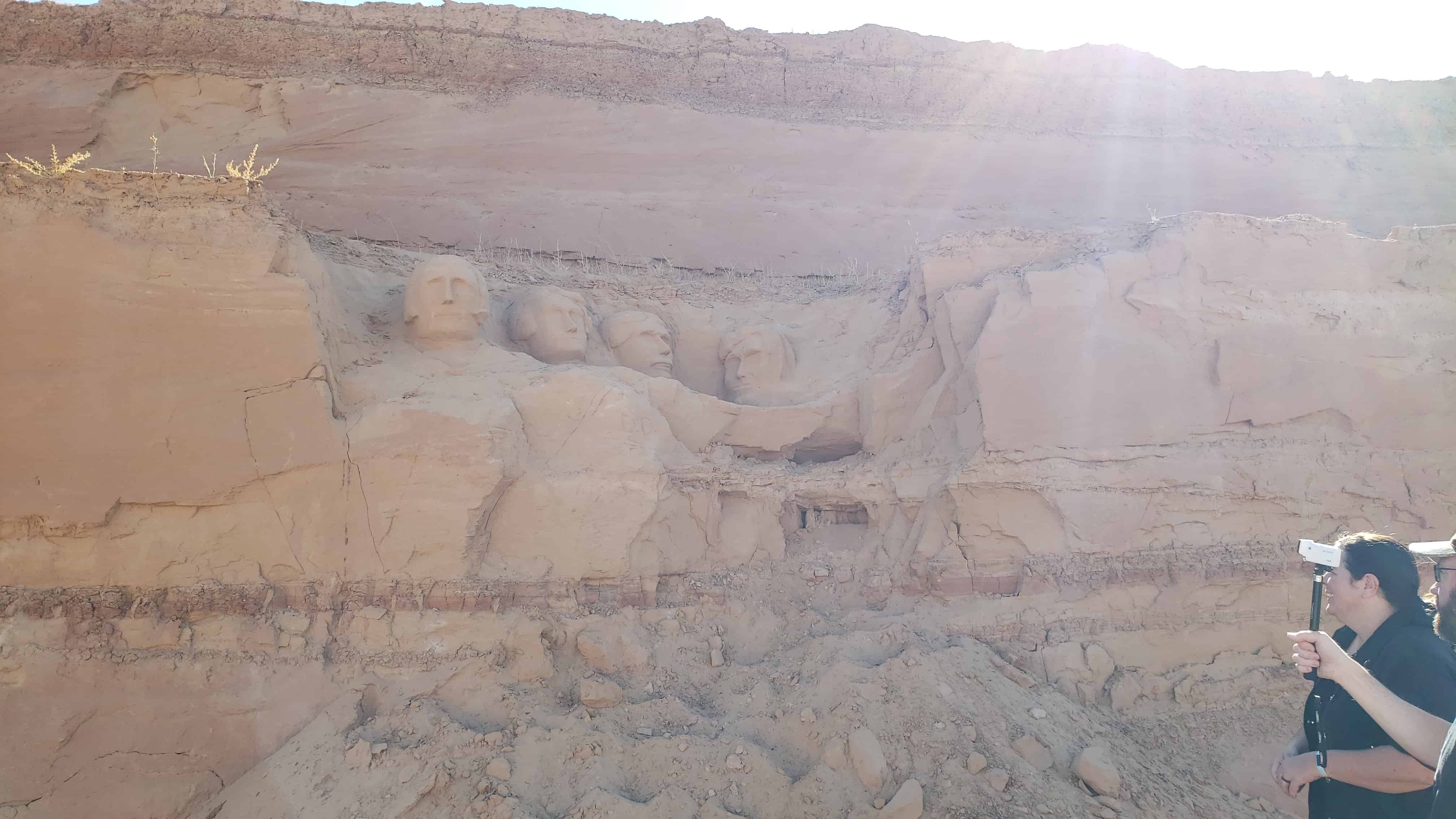 In the hills above Mesquite, Pete Karns has carved a miniature Mount Rushmore into the sandstone along the roadside.