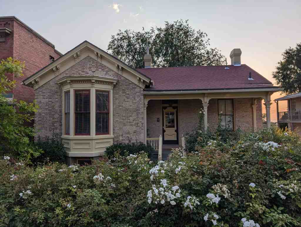 Originally probably a vernacular “T” plan house, this single story house with basement was updated during the Victorian period to include an oriel on the front bay in the Italianate style, and ornamental porch elements. – Diana Johnson