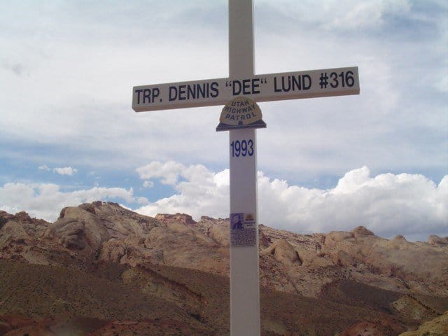 “Dee” Lund joined the Protective Services Section of the Utah Highway Patrol in 1986. He was promoted to Trooper in 1987 and transferred to field operations at Hanksville. He later moved to Green River, Emery County. On June 16, 1993, he was assisting other officers who were attempting to stop a stolen vehicle on Interstate 70. During the high-speed pursuit of the vehicle, three Troopers were fired upon. One of the rounds passed through the windshield of Trooper Lund’s patrol car, striking him in the head and killing him. Two suspects were later arrested and convicted of his murder.