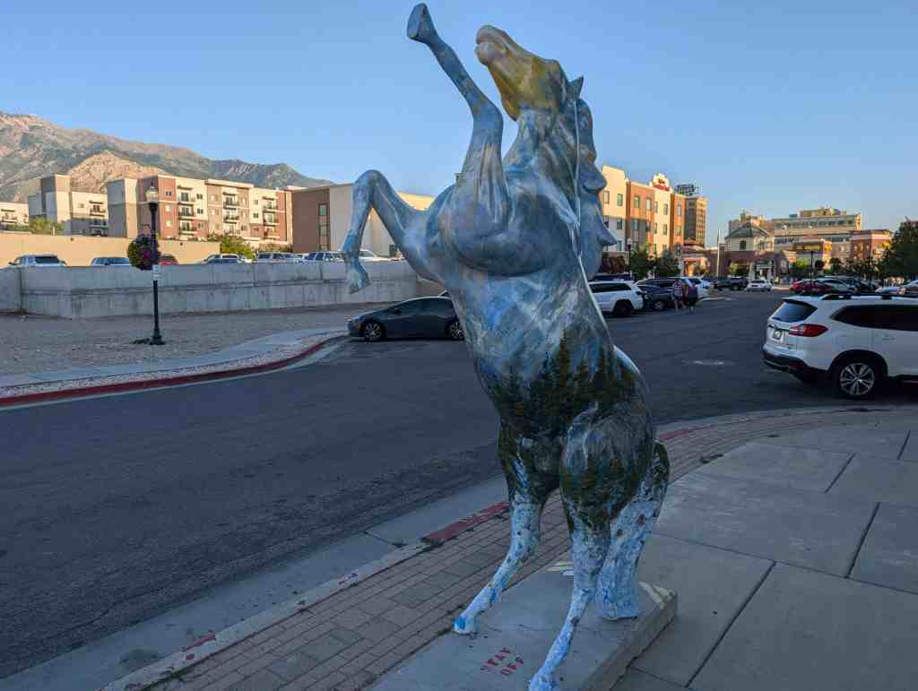 Part of Ogden’s Pioneer Days 75th Celebration was to put out 60+ fiberglass horse sculptures painted in different ways. This is part of that series, the rest can be see on this page.