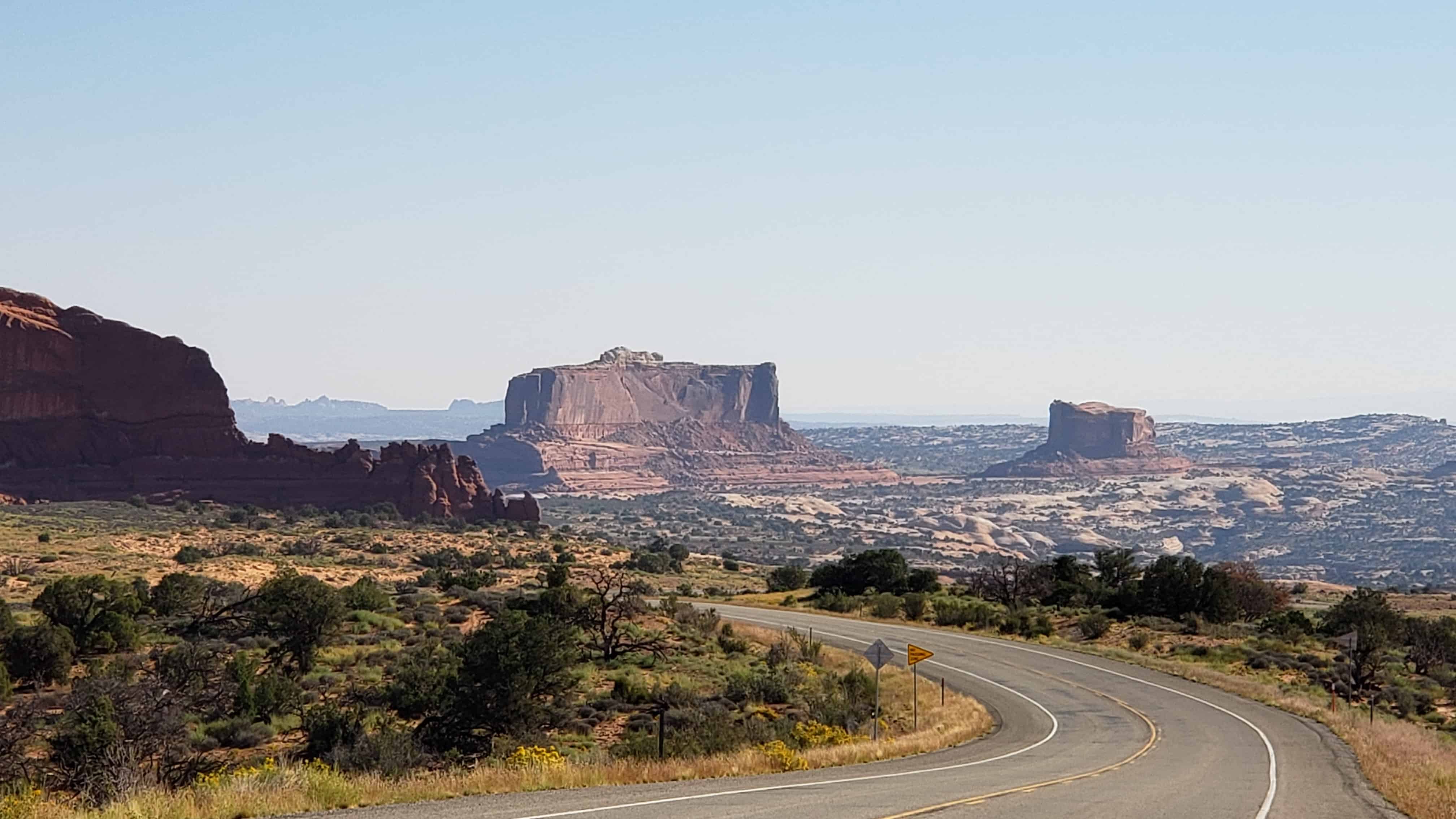 The location is at a point on the road to Canyonlands just outside Moab where you can see Monitor and Merrimac in the background.