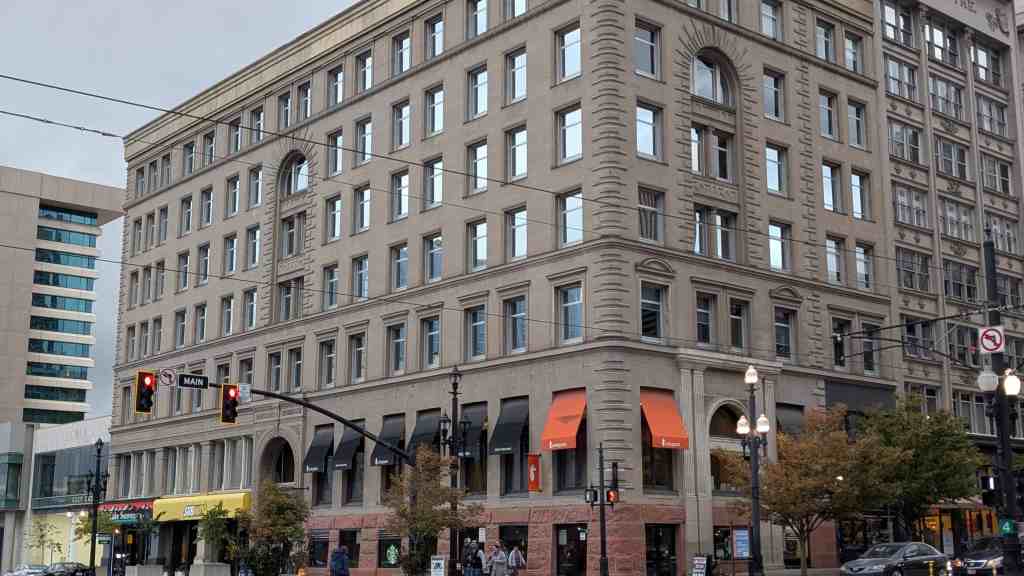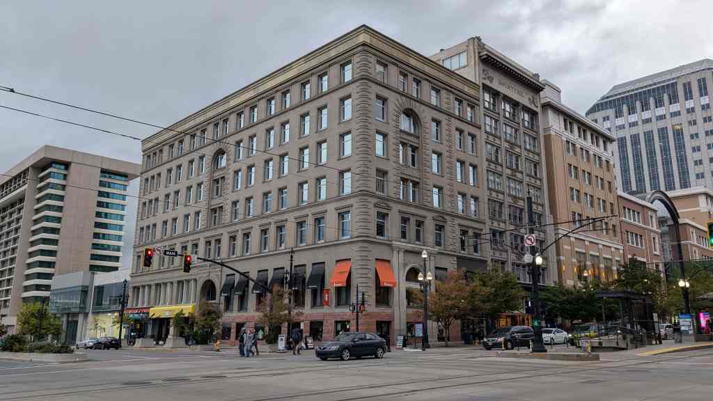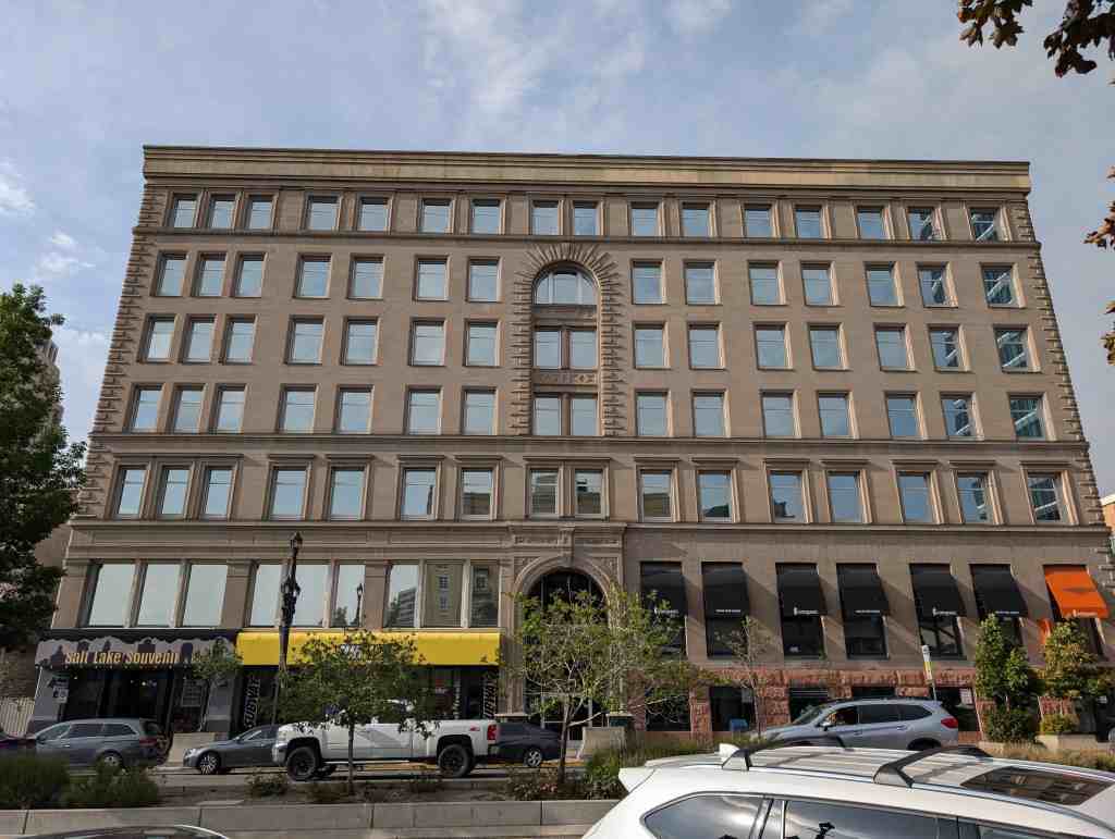 The McCornick Block represents a transition in Salt Lake City’s commercial architecture from the two to four-story buildings of the 19th century to the skyscrapers of the 20th century. When it was completed in 1893, the seven- story McCormick Building towered over its smaller neighbors. Six early model elevators enabled people to reach the dizzying heights of the seventh floor with ease. This building originally featured a four-foot copper cornice and a columned entryway on the east side. A keen observer will note that the northernmost two bays are a later addition (1908), but conform to the building’s original design.