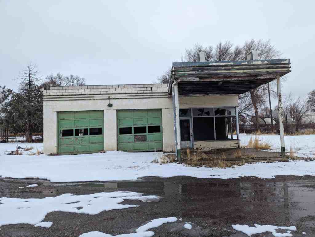 Lan’s Service Station, constructed 1949, is located on Main Street of Levan, Utah. Lan Taylor started the business on April 4, 1930. A little while later, a construction truck ran into the original building. Taylor rebuilt the station with two service bays and a canopy in 1949. He continued to operate the station until he sold it to his grandson Ronald Taylor. During its active years, the service station advertised Texaco products. This is an oblong box form in the Modern style with a canopy over where the gas pumps used to be. It has a flat roof with three distinctive bands encircling the building.*