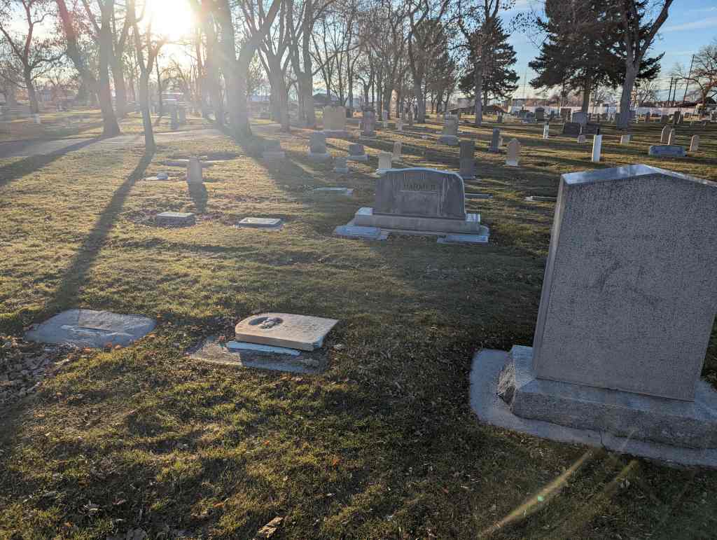 This stone has been broken but it can be seen standing in the 2001 movie Brigham City.