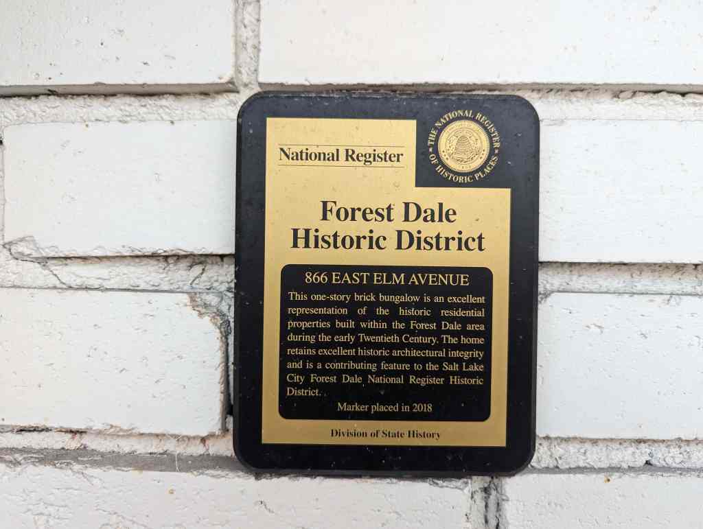 This one-story brick bungalow is an excellent representation of historic residential properties build within the Forest Dale area during the early Twentieth Century. The home retains excellent historic architectural integrity and is a contributing feature to the Salt Lake City Forest Dale National Register Historic District.