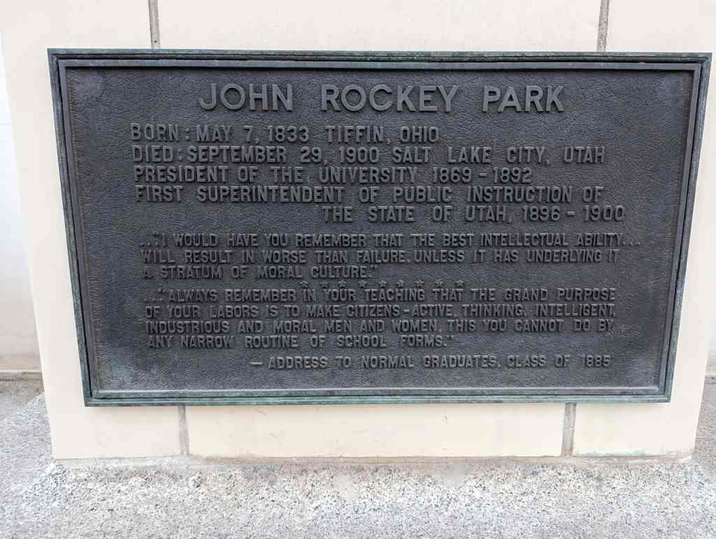 John Rockey Park, M.D. New York University, was one of a group of Eastern physicians who came to Utah during the Civil War period, after deciding to abandon medicine as a career. He readily found employment as a teacher at the Draper School, where his influence drew students from all parts of the Territory of Deseret and beyond. In 1869 the Regents of the University of Deseret elected Dr. Park the University’s presiding officer to reopen the institution which had been closed nearly 17 years for lack of funds. Dr. Park served as the first president until 1892, providing 23 years of unwavering leadership through early struggles and adversity. He brought the school to full status, with B.A. and B.S. programs in classical, scientific and normal courses. He was described by the leaders and students of his time as “ample in learning and comprehensive in scholarship; filled with enthusiasm in his work; felicitous as a teacher, with unlimited power for work.”