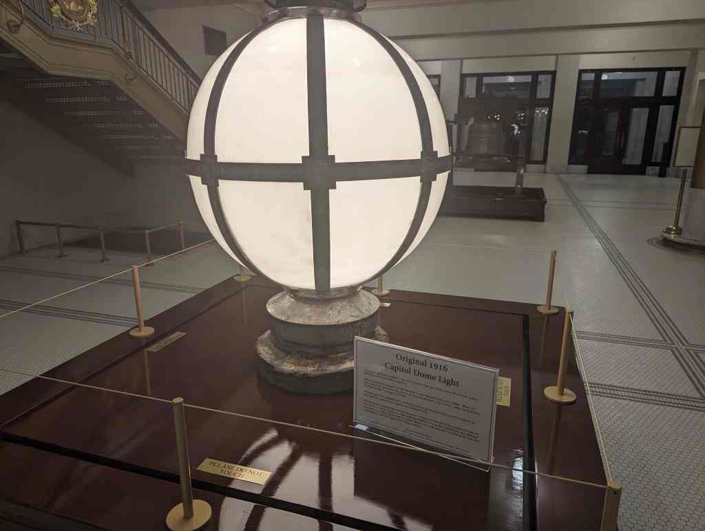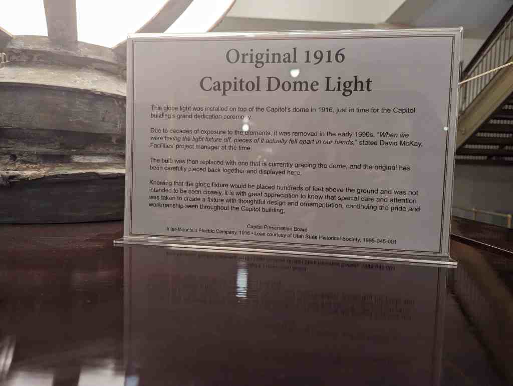 The bulb was then replaced with one that is currently gracing the dome, and the original has been carefully pieced back together and displayed here.