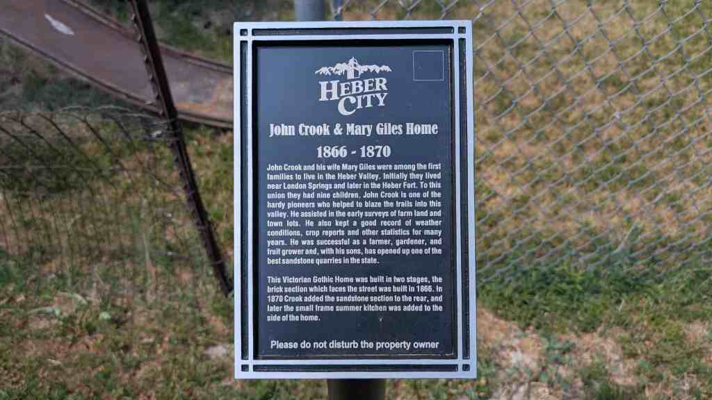 According to family tradition, Crook built the brick part of the house that faces Third North, in 1866, The brick was manufactured at the Van Wagoner brick yards. In 1870 the section was added to the rear. Later a frame summer kitchen was also attached to the rear.