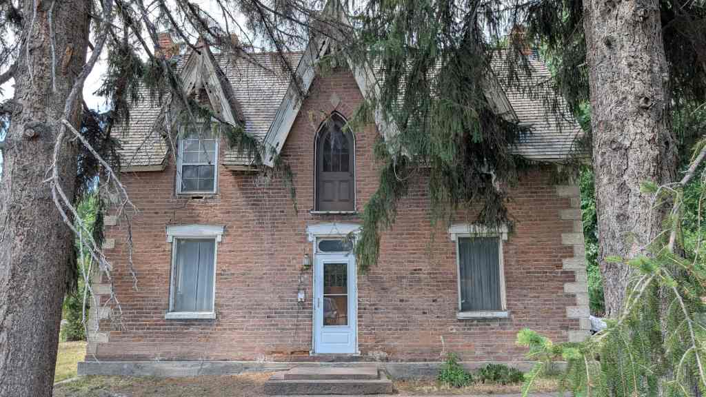 This Victorian Gothic Home was built in two stages, the brick section which faces the street was built in 1866. In 1870 Crook added the sandstone section to the rear, and later the small frame summer kitchen was added to the side of the home.