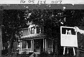 This house features Colonial Revival details but lacks the symmetrical facade usually associated with this style. The front porch, front door, and two-story wood bay are all off-center and the windows differ in their size and treatment. Other unusual details include the double-hipped roof dormer, the corner column by the west second story window, and the scroll-sawn corner brackets under the eaves. The columns, brackets, and balustrade of the front porch are repeated on a smaller porch on the east side of the house.