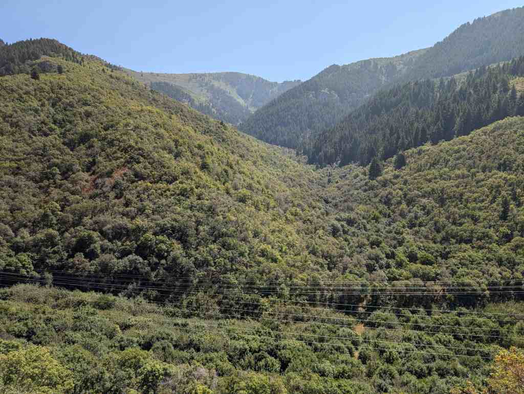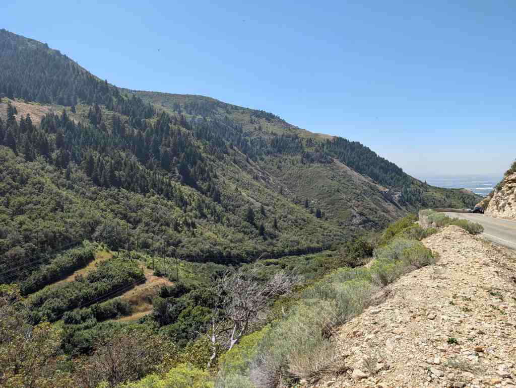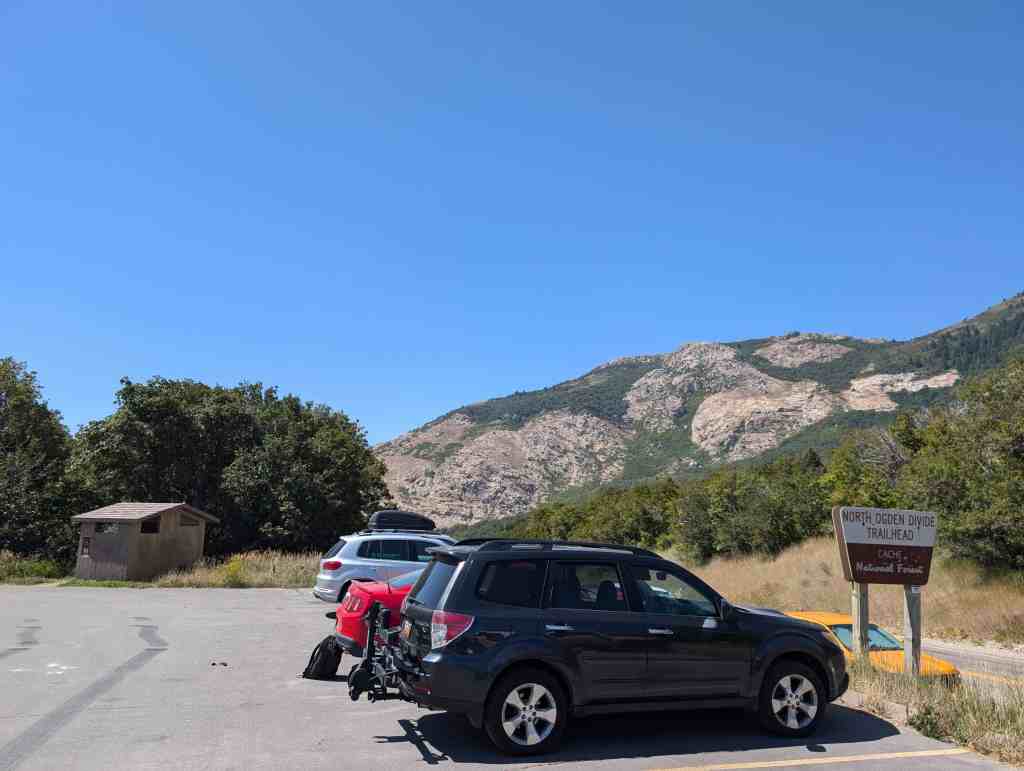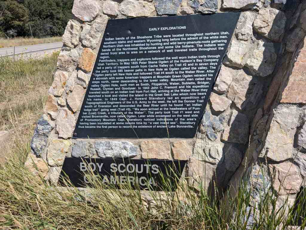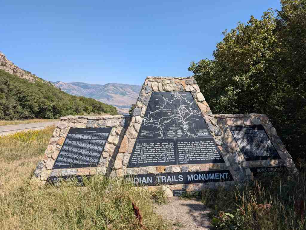 This is Sons of Utah Pioneers Historic Marker #I-1, located at the South Skyline Trail atop North Ogden Divide on North Ogden Canyon between North Ogden, Utah and Liberty, Utah.